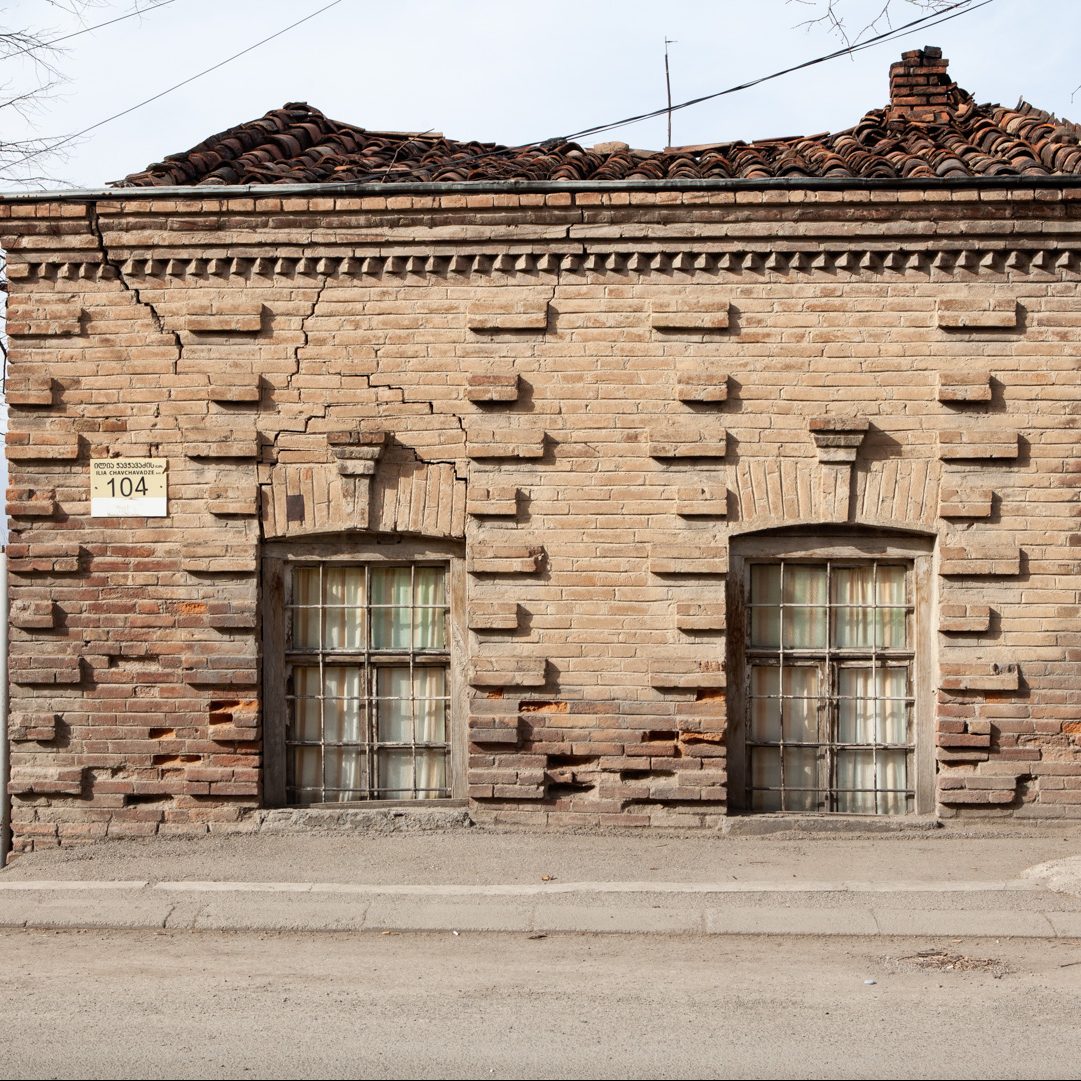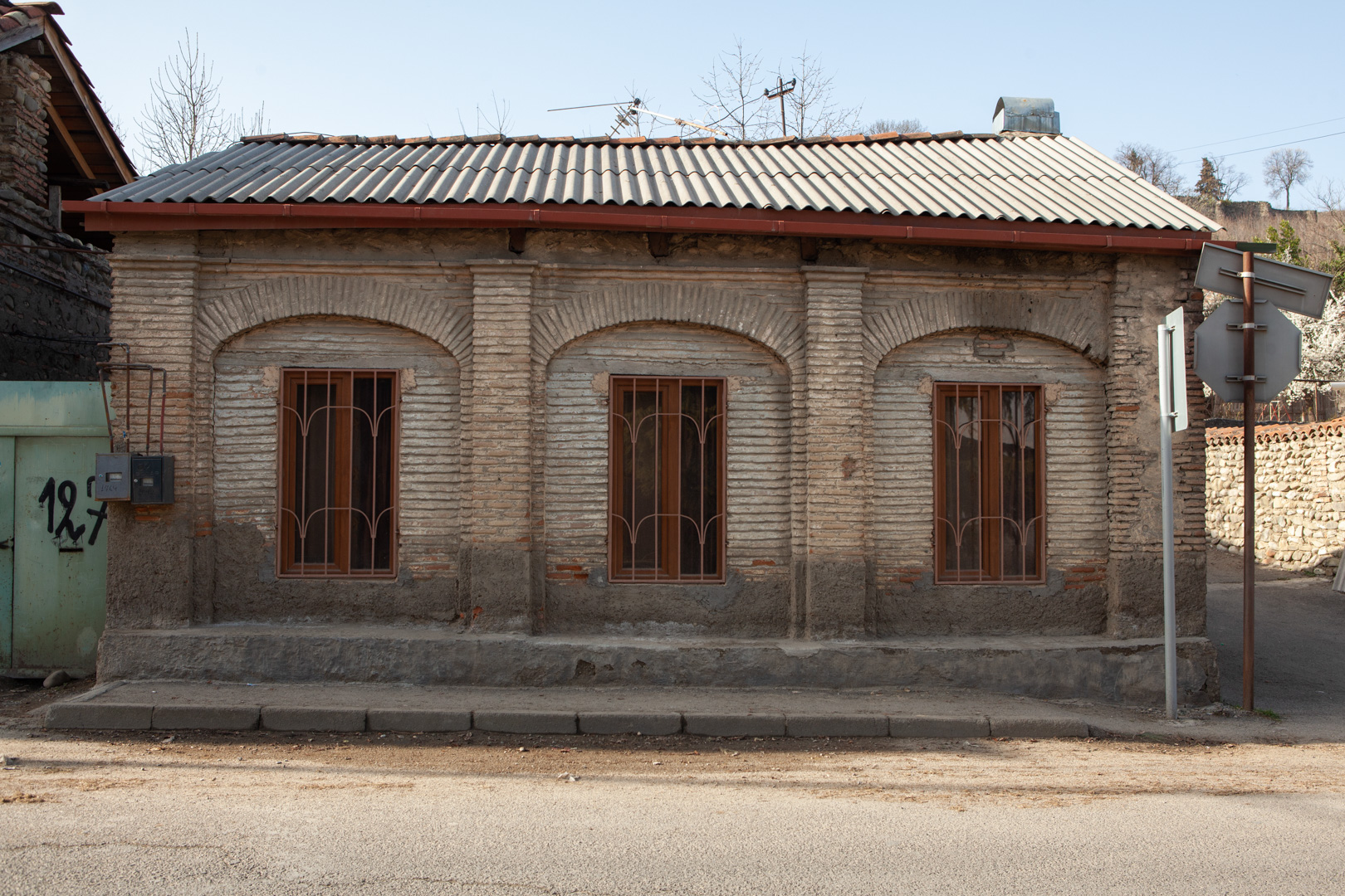 დაბალი ერთსართულიანი საცხოვრებელი სახლი მიწის პირზე დასმული ორი სარკმლის ღიობითა და აგურის სახასიათო კედლის წყობით..