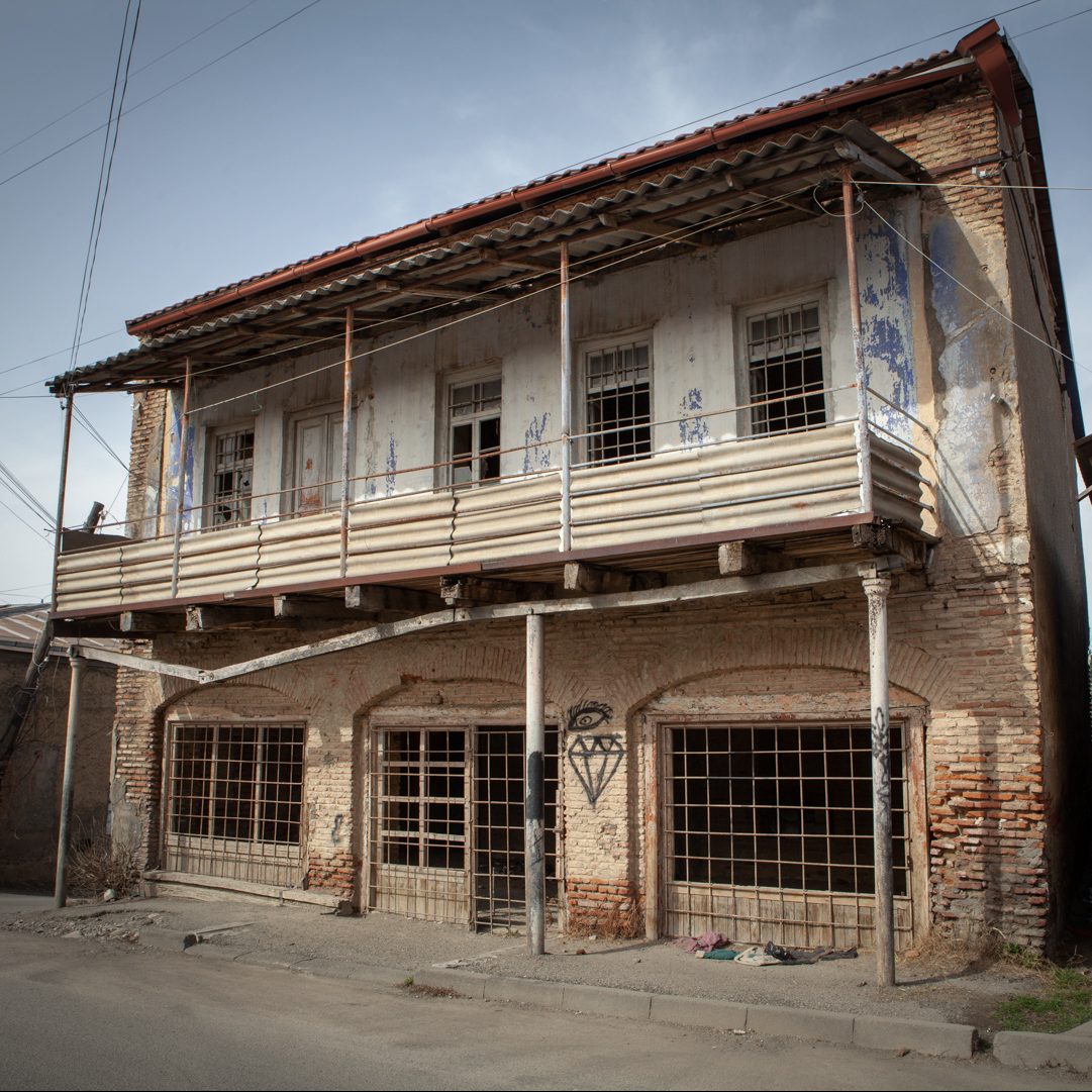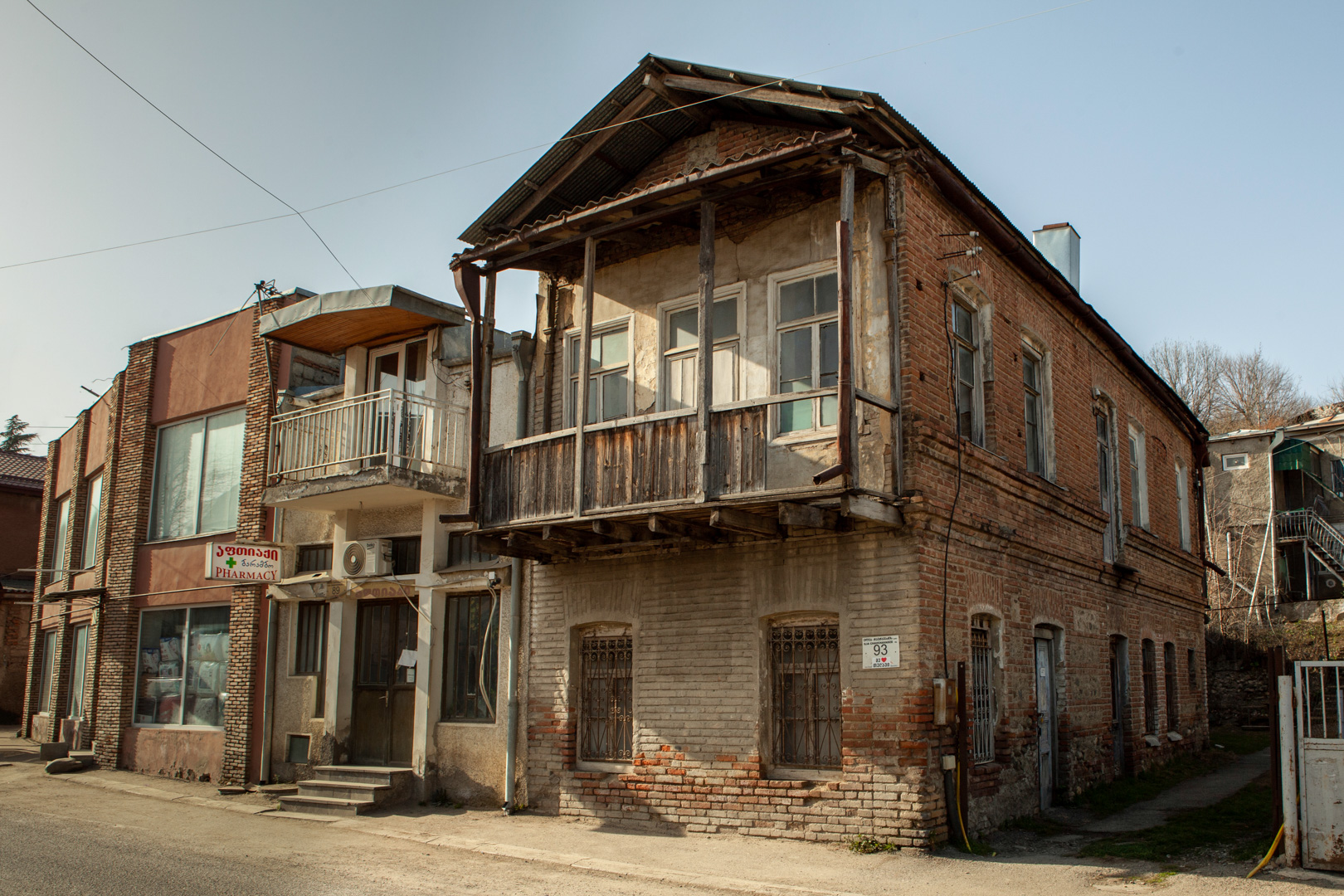 ქუჩათა კვეთაზე მდგარი, აგურისა და რიყის ქვით ნაგები, ნალესობით დაფარული ორსართულიანი შენობა თავისი მდებარეობითა და..