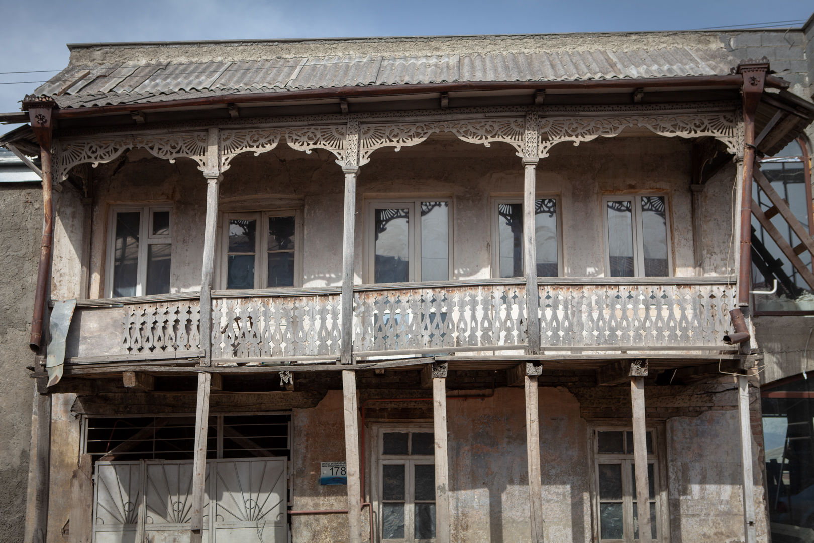 ძველთელავური ორსართულიანი საცხოვრებელი სახლი გამოირჩევა კომპაქტური, მოხდენილი პროპორციებითა და ხის ჭვირულორნამენტული აივნით. სახლის გვერდითა კედლის..