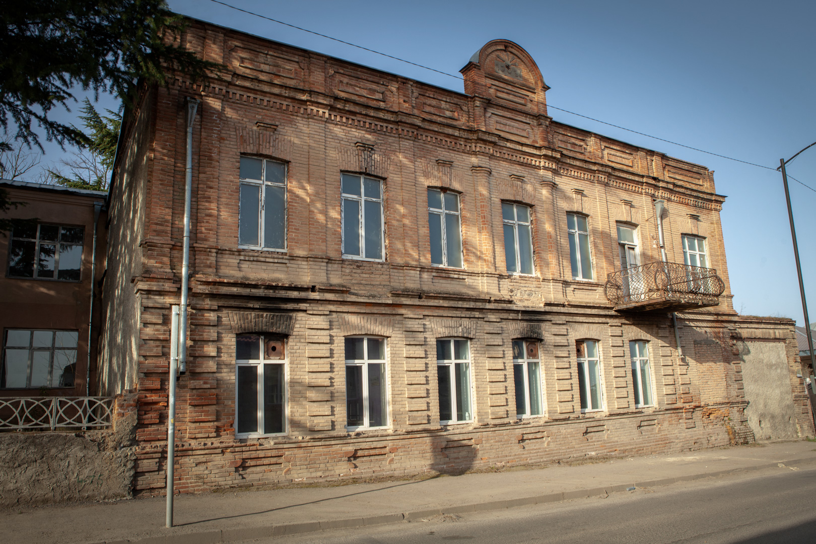 აგურისა და რიყის ქვის თელავური წყობით ნაგები, ნალესობით დაფარული ორსართულიანი შენობა თავისი მოზრდილი ზომებითა და..