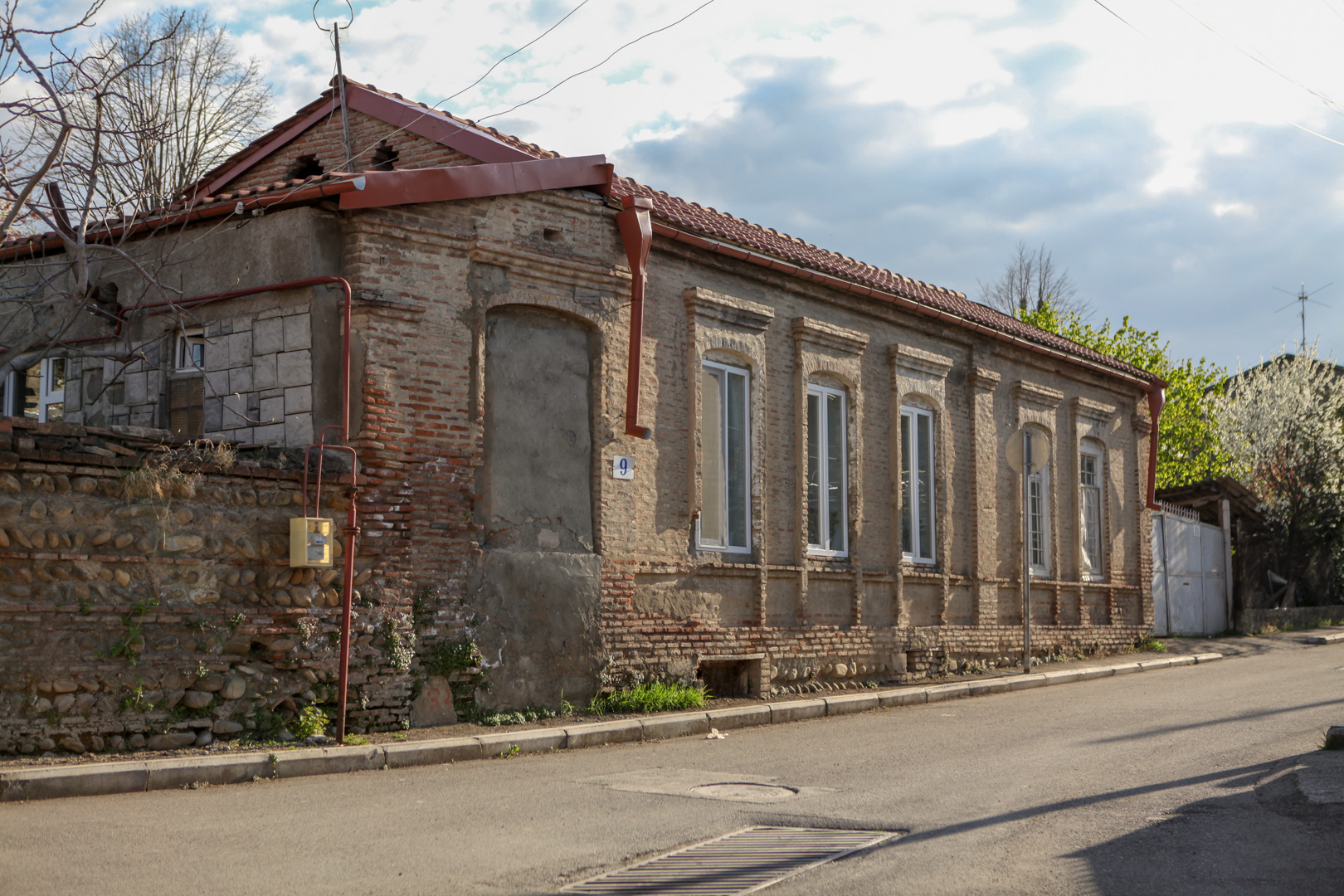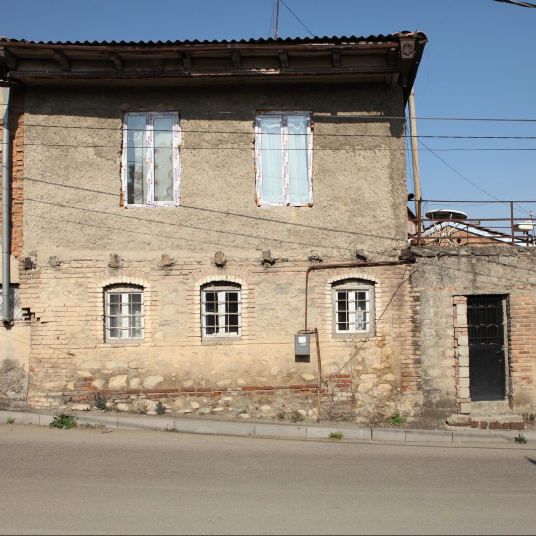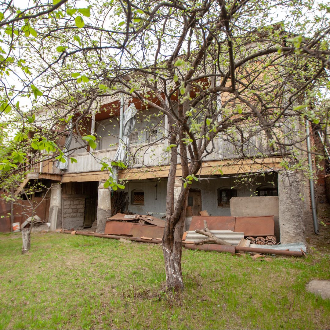მე-19 საუკუნის მეორე ნახევარში აგებული ორსართულიანი საცხოვრებელი სახლი დღეს ძლიერ სახეცვლილია და მძიმე მდგომარეობაშია. აგურისა..