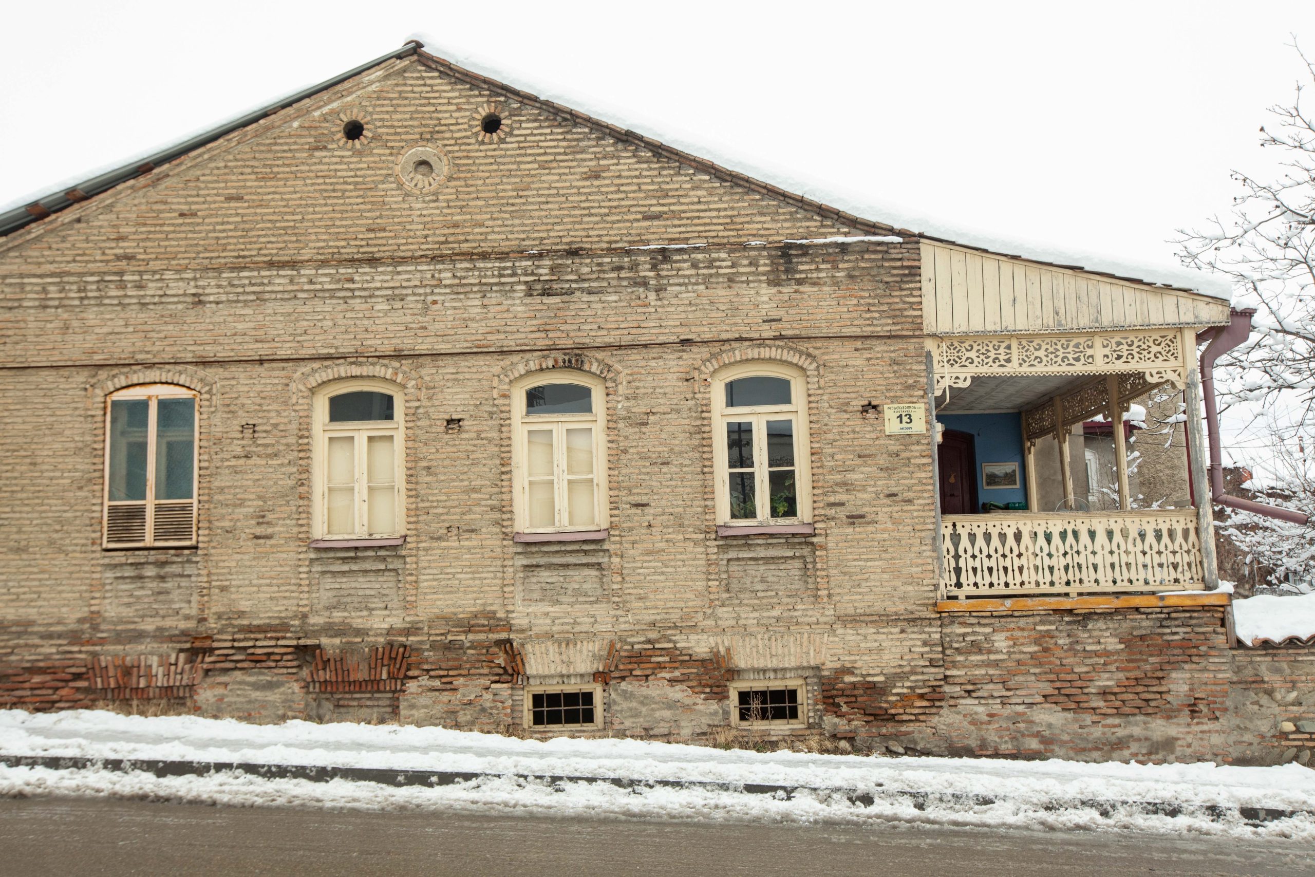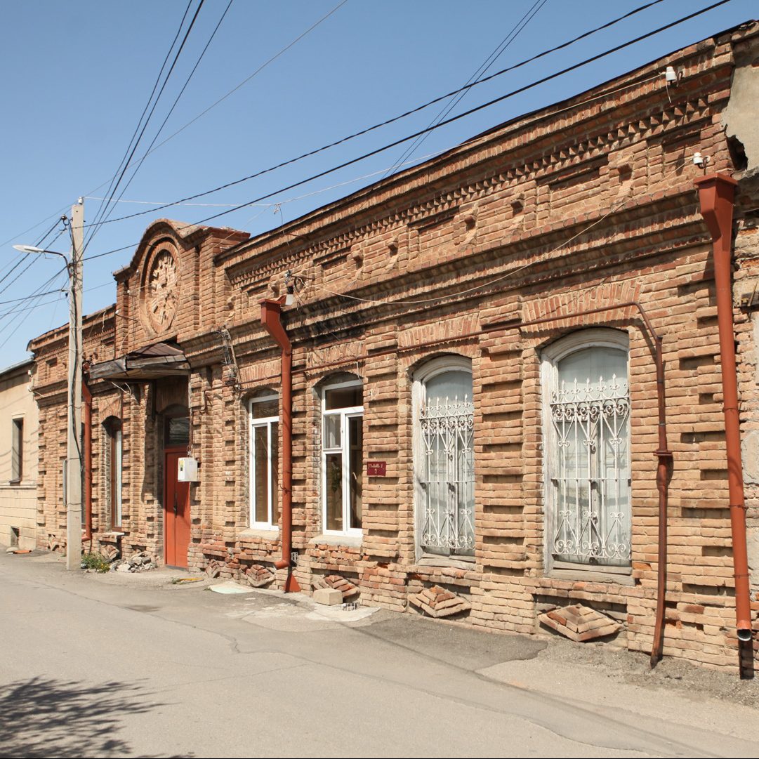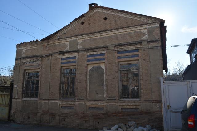 ქვის დაბალ ცოკოლზე მდგარი, სიგრძივ ღერძზე წაგრძელებული შეულესავი აგურის ერთსართულიანი შენობა ქუჩის საერთო განაშენიანებაში საკმაოდ..