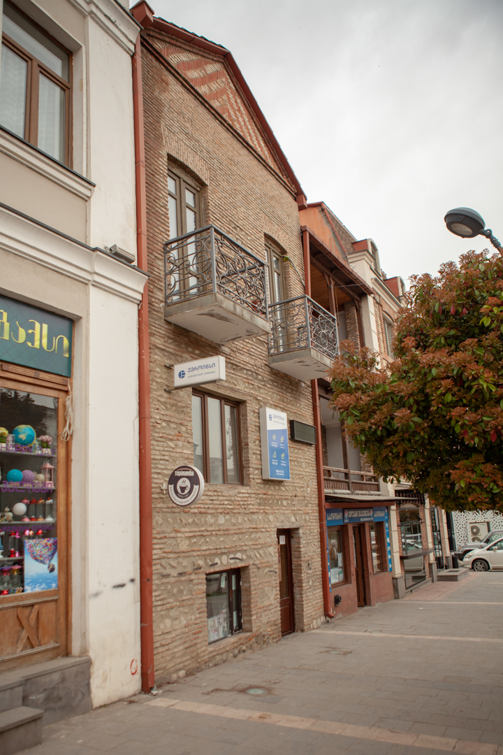 მაღალ ცოკოლზე მდგარი, სიგრძივ ღერძზე წაგრძელებული შეულესავი აგურის ერთსართულიანი შენობა ქუჩის საერთო განაშენიანებაში საკმაოდ დიდ..