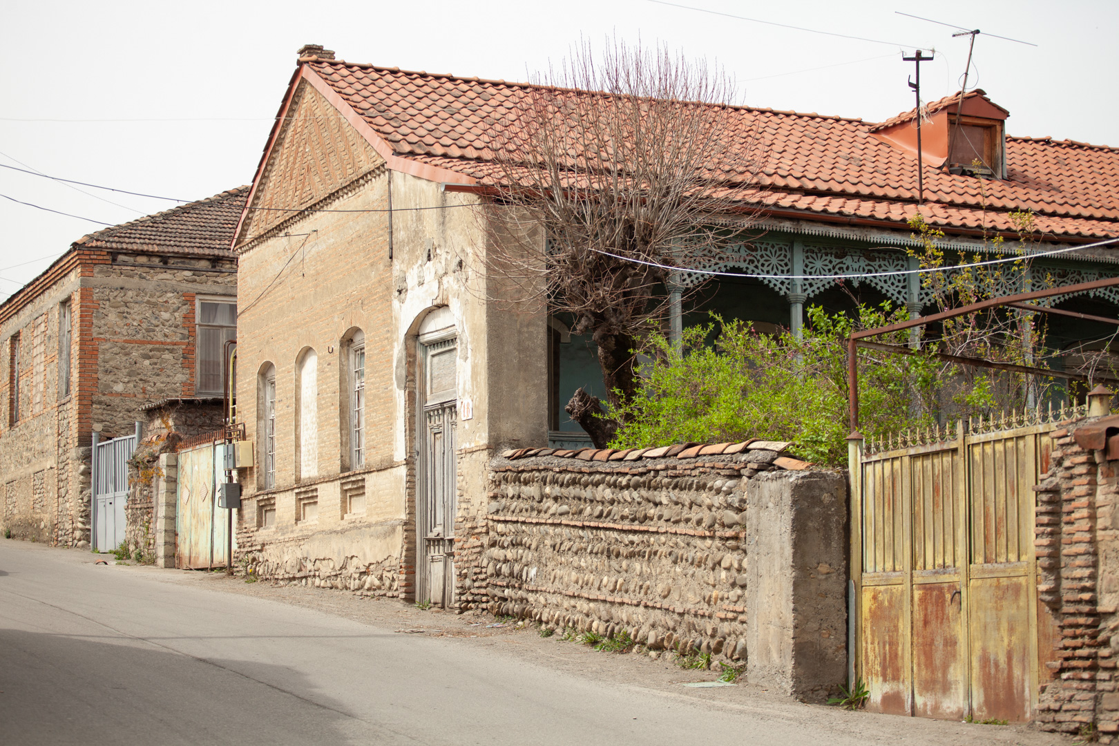 კახეთისათვის ტრადიციული, აგურისა და რიყის ქვის შერეული წყობით ნაგებ შენობას მაღალი ნახევარსარდაფი აქვს, რაც მას..