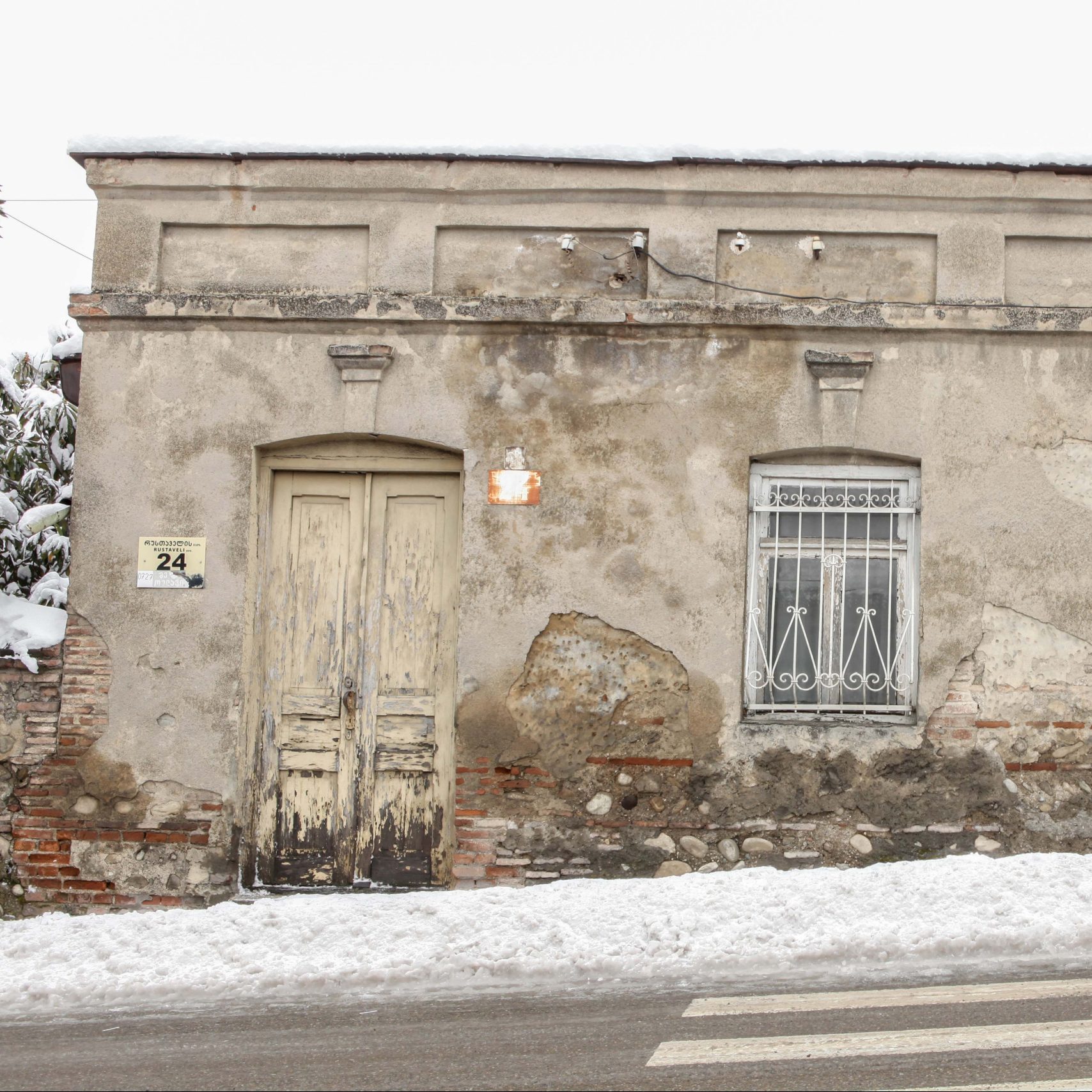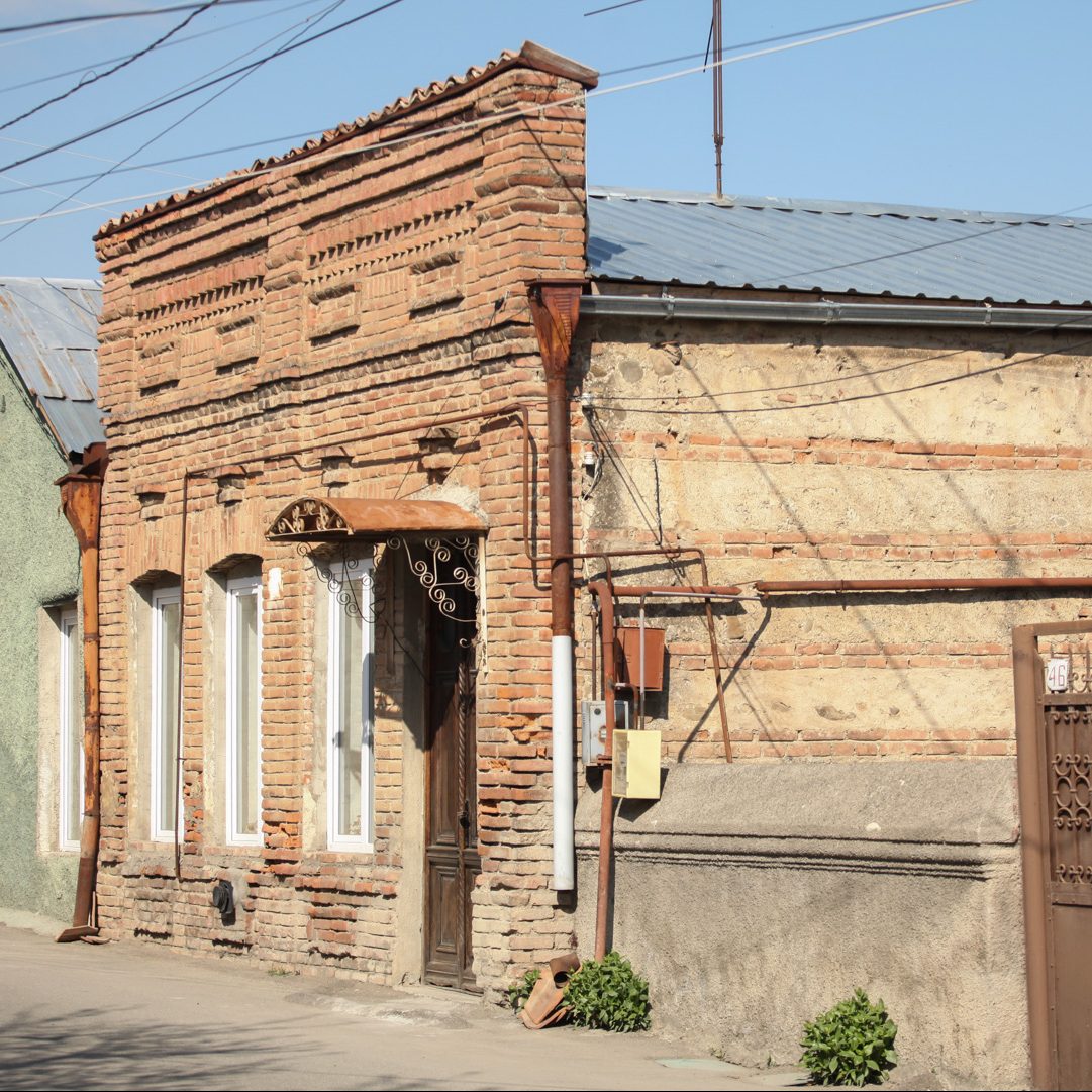 ქუჩისკენ მიმართული, აგურის მჭიდრო წყობით მოპირკეთებული ფასადი, XIX საუკუნის თელავის საცხოვრისისთვის ტრადიციული კომპოზიციით ხასიათდება –..