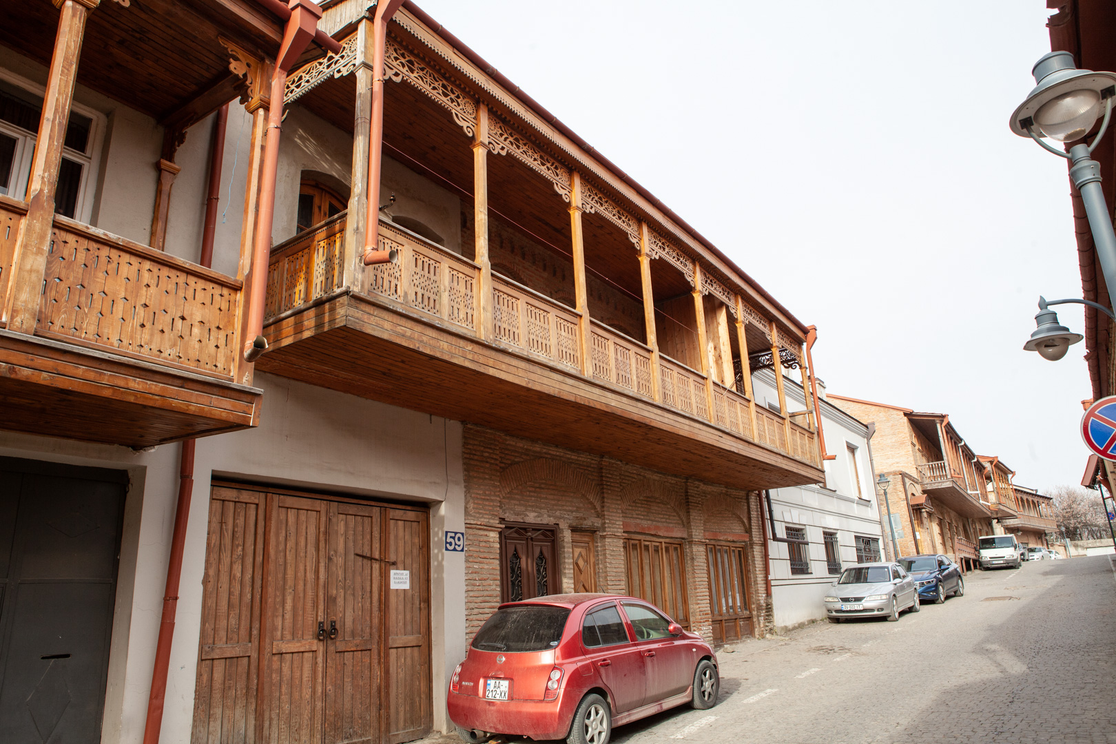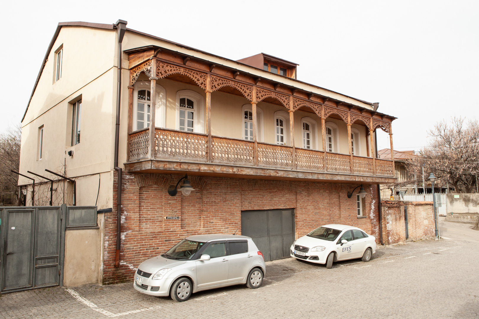 ქუჩის სიგრძივ ღერძზე წაგრძელებული აგურის ორსართულიანი საცხოვრებელი სახლის მთავარ მხატვრულ აქცენტს წარმოადგენს ხის მოხარატებული აივანი,..