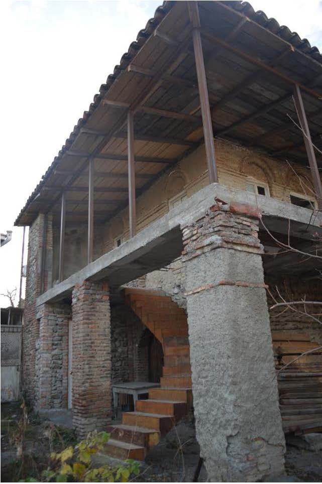 At the back of the yard stands a house built of old bricks and cobblestones. The building is heavily modified; From the authentic architectural elements, there are rectangular massive brick pillars on which the balcony of the second floor rests. The building was built in the second half of the 19th century. The building is important for its antiquity and the planning composition traditional for Telavi.