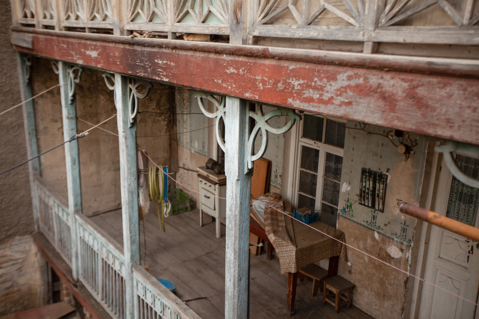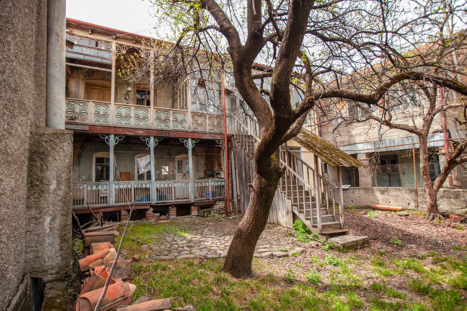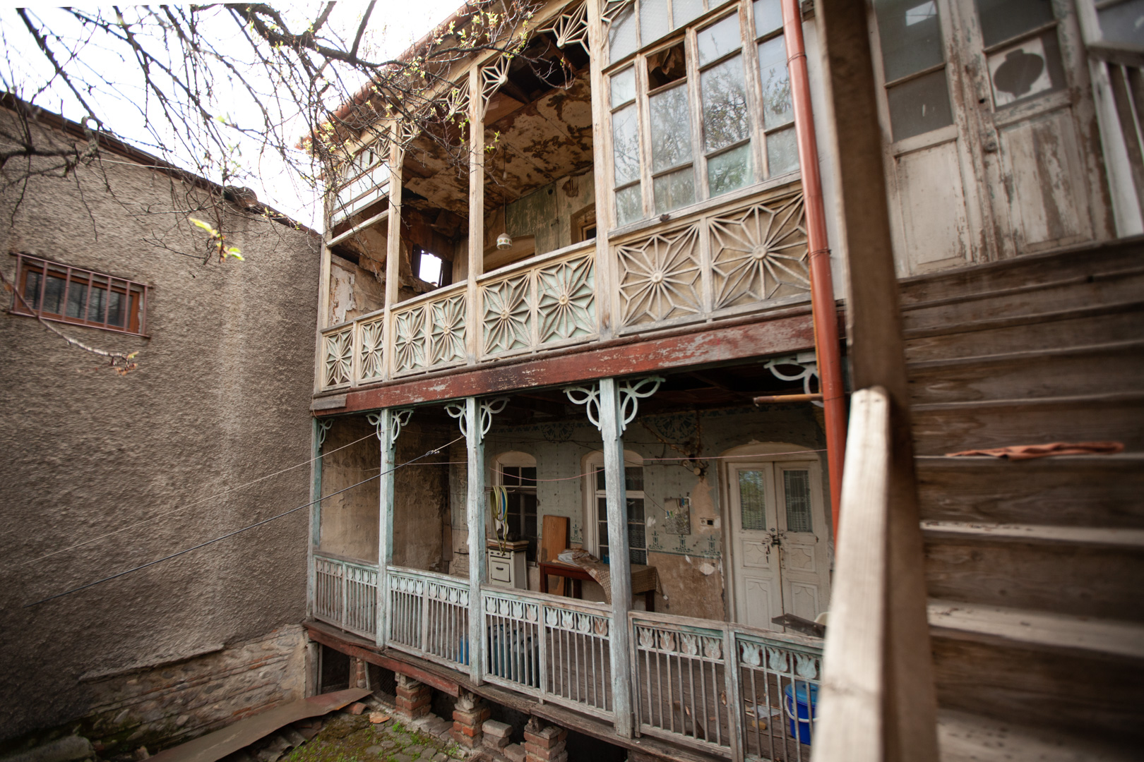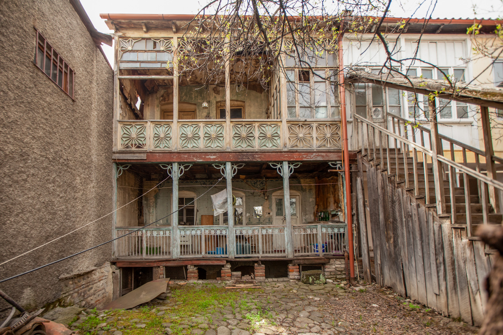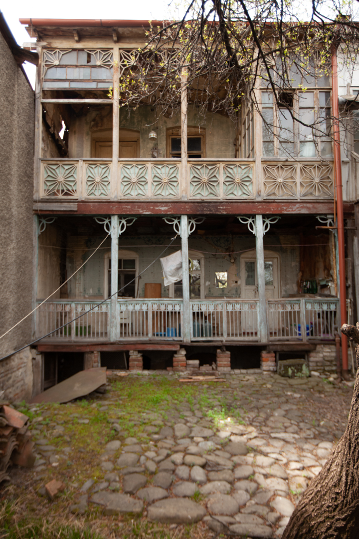 A two-storey house located on uneven relief in the depths of the courtyard is distinguished by its graceful proportions and scale. The house has wooden openwork balconies on both floors. According to saying, the owner of the building was a carpenter, and the facade of the courtyard of the house was created according to his taste and free interpretation. It can be said that this building is one of the unusual and interesting examples of “Telavi Modern”; This indicates that the urban architecture of Telavi did not lag behind the popular world trends of the early 20th century.