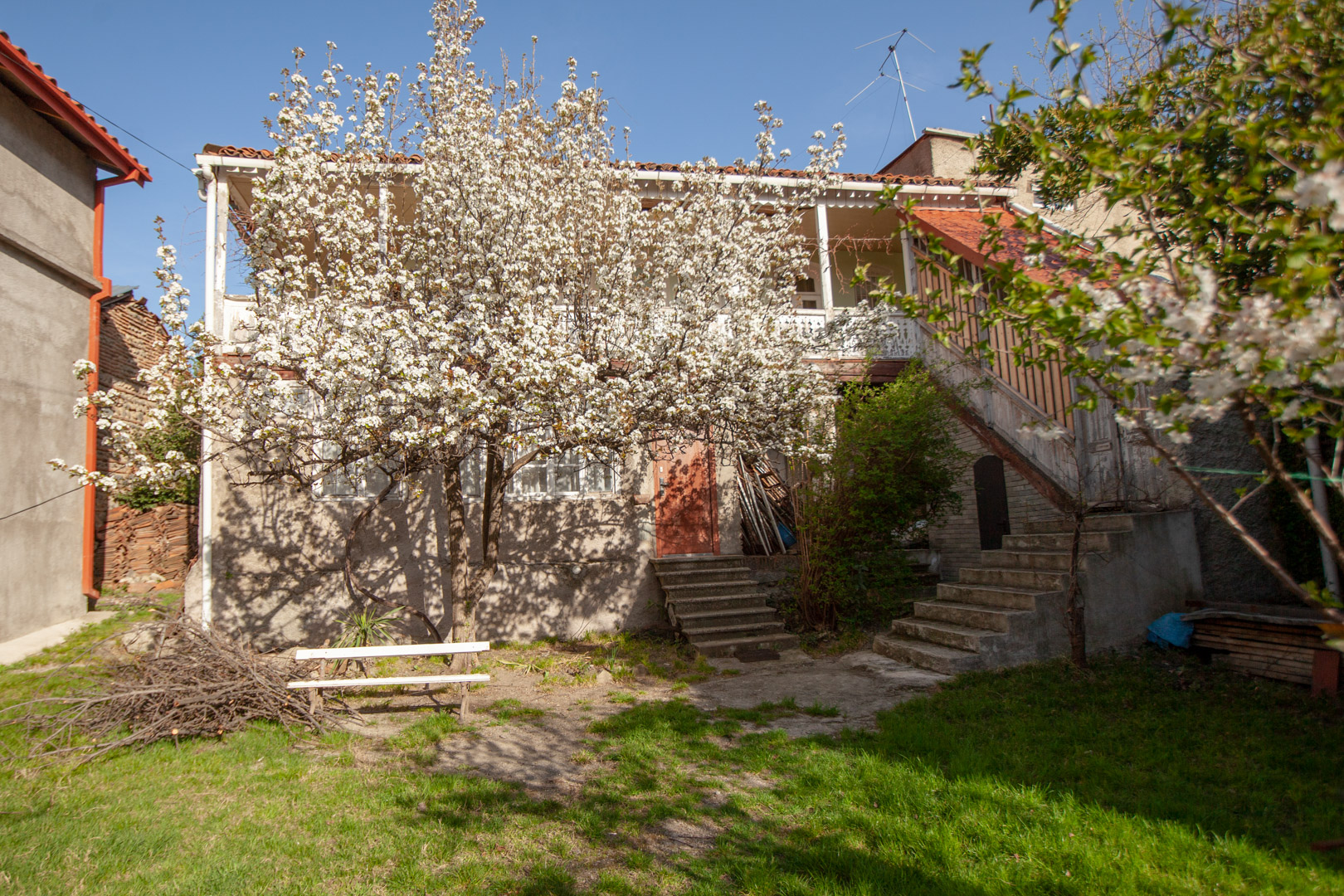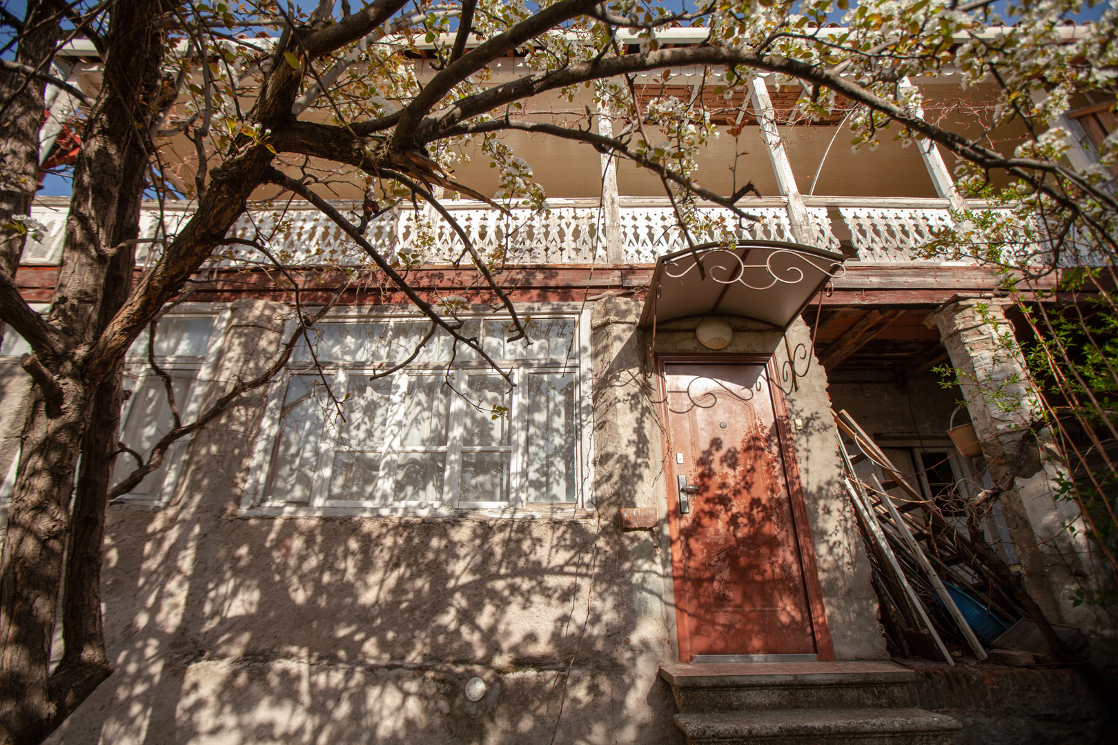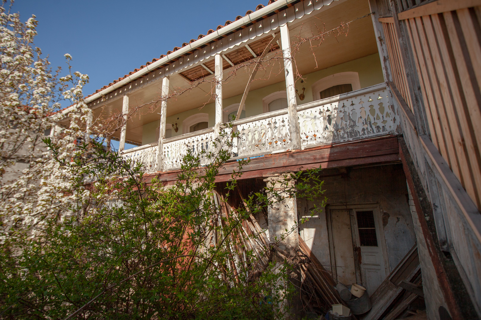 The artistic dominant of the two-storey house is its wooden lathed balcony, which runs along the entire length of the two facades of the building. The brick colonnade of the first floor is currently mured up, which significantly mar the authentic appearance of the building. The house was built in the second half of the 19th century. The building is important for its antiquity, traditional for Telavi planning and artistic and architectural design.