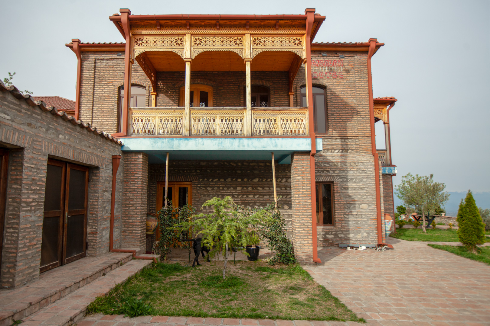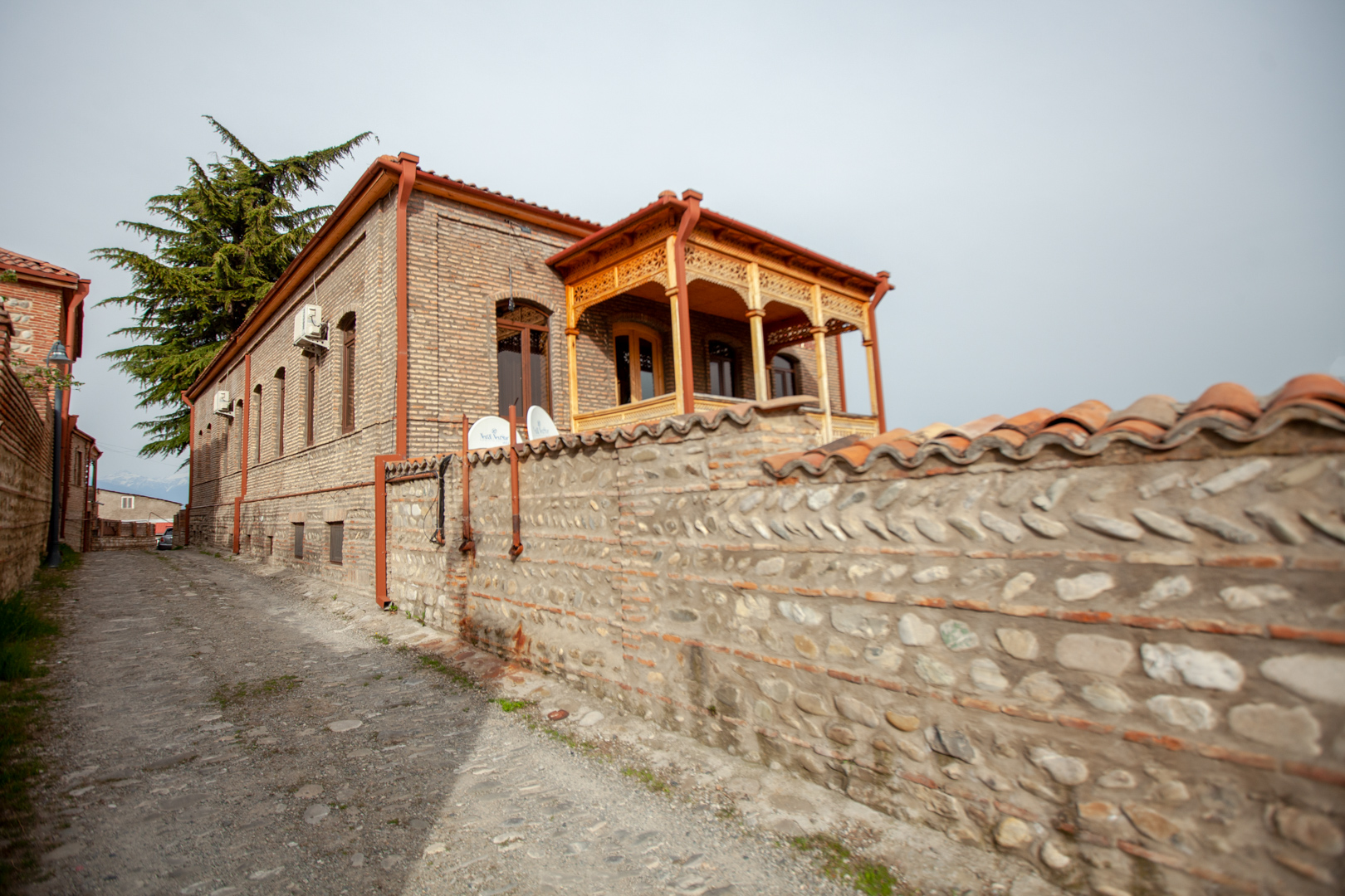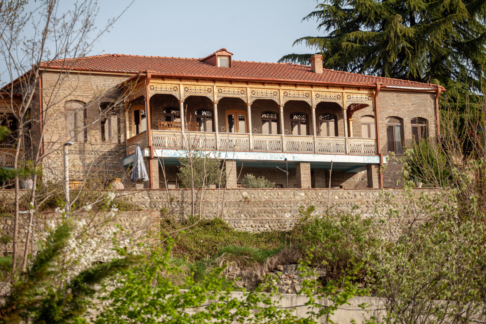 Like the Kakhetian building technique, the main decoration of the building, built of cobblestone and old Georgian brick, is a wooden openwork balcony. Today, in the house that dates back of the second half of the 19th century is a hotel. The fence surrounding the building is an interesting component of the microdistrict. The building with its scale, proportion or spatial solution plays an important role in the adjacent development.