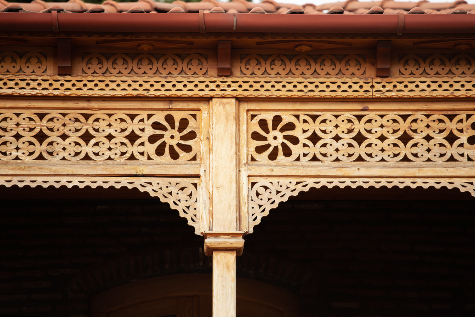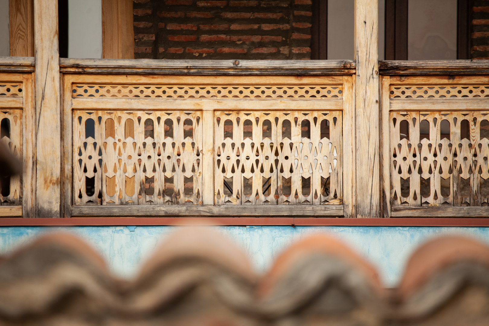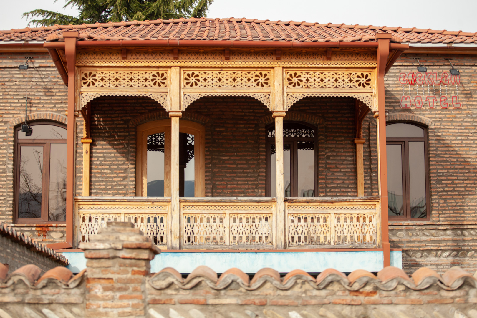 Like the Kakhetian building technique, the main decoration of the building, built of cobblestone and old Georgian brick, is a wooden openwork balcony. Today, in the house that dates back of the second half of the 19th century is a hotel. The fence surrounding the building is an interesting component of the microdistrict. The building with its scale, proportion or spatial solution plays an important role in the adjacent development.