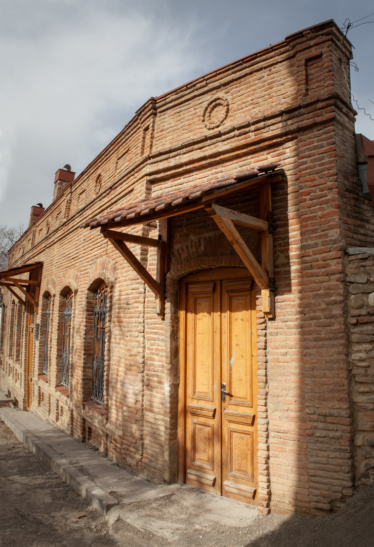 A one-storey brick building, elongated along the longitudinal axis, is organically combined with the sloping terrain and harmoniously fits into the existing development. The brickwork facade, and the modest scale well express the character of Telavi’s architecture. The building was built in the second half of the 19th century. In 1880-1964, the well-known journalist and public figure Ivane Paatashvili lived in this house. Along with the memorial, the building has artistic and architectural value. The building is important for its graceful proportions and facade decoration made in brickwork.