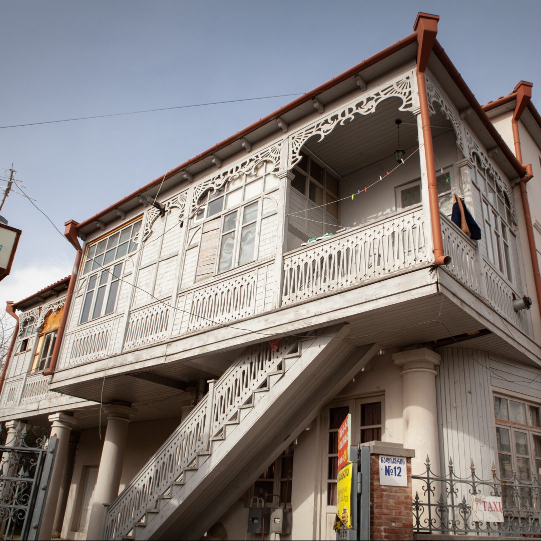 ირეგულარული გეგმარების მქონე ორსართულიანი საცხოვრებელი სახლი ქუჩის ხაზიდან ოდნავ სიღრმეშია შეწეული და მოსაზღვრულია ქვითა და აგურით ნაგები ზღუდე-გალავნით. შენობის მთავარი მხატვრული აქცენტი მის რამდენიმე ფასადზე განთავსებული, ნალესობით დაფარული აგურის კვადრატულსა და წრიულ ბურჯებს დაყრდნობილი ხის ჭვირული აივანია, რომლის ორნამენტულ რეპერტუარშიც არტ ნუვოს სტილისტიკა იკითხება. როგორც ირკვევა, მე-19 საუკუნის შუა ხნის შენობას ხის აივანი გასული საუკუნის დასაწყისში მიაშენეს. თავისი მდებარეობით, მსხვილი მასშტაბითა და სივრცით-გეგმარებითი კომპოზიციით მოცემული ნაგებობა მნიშვნელოვან როლს ასრულებს მიმდებარე განაშენიანების ფორმირებაში.