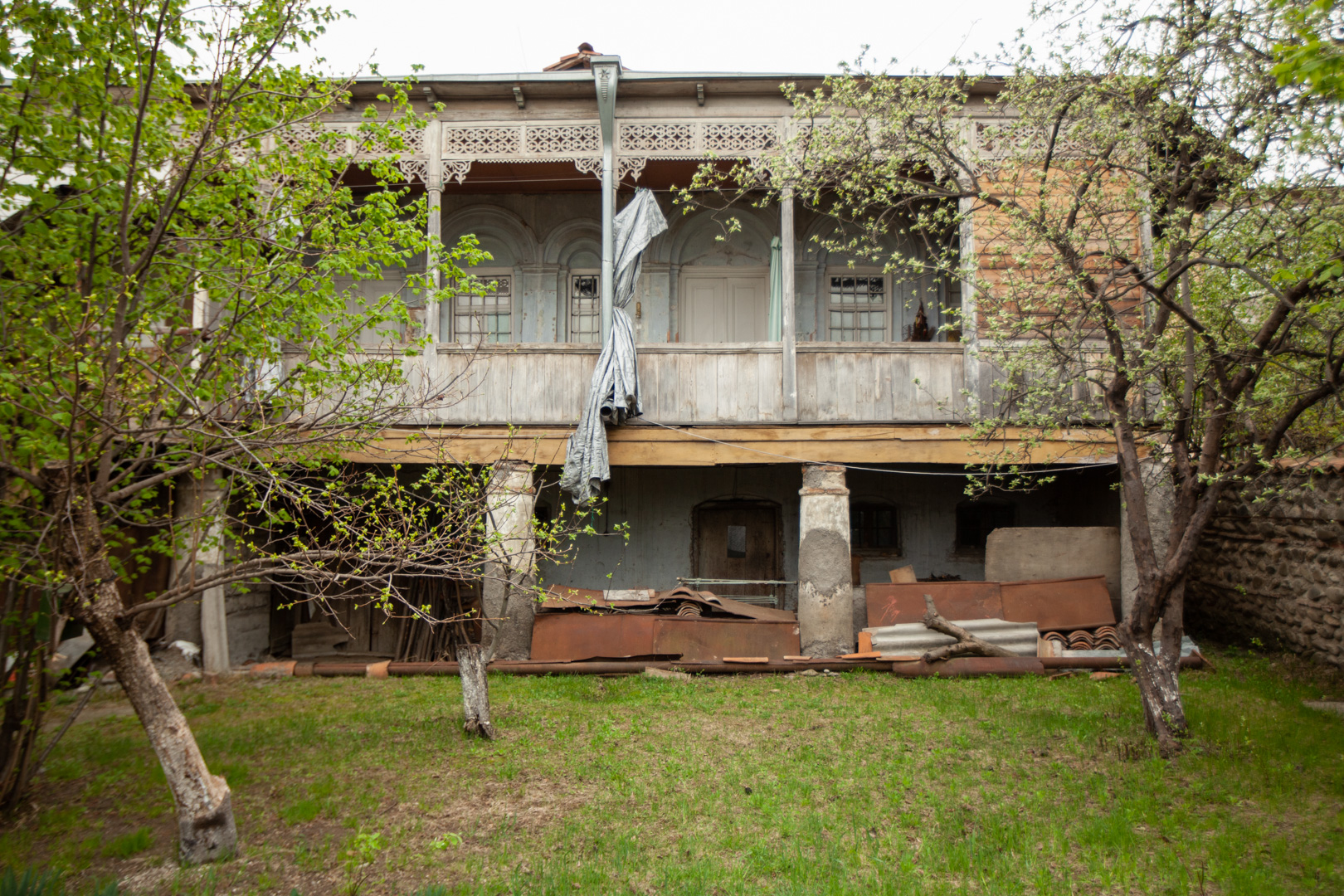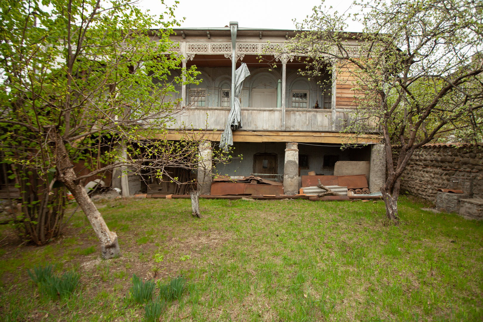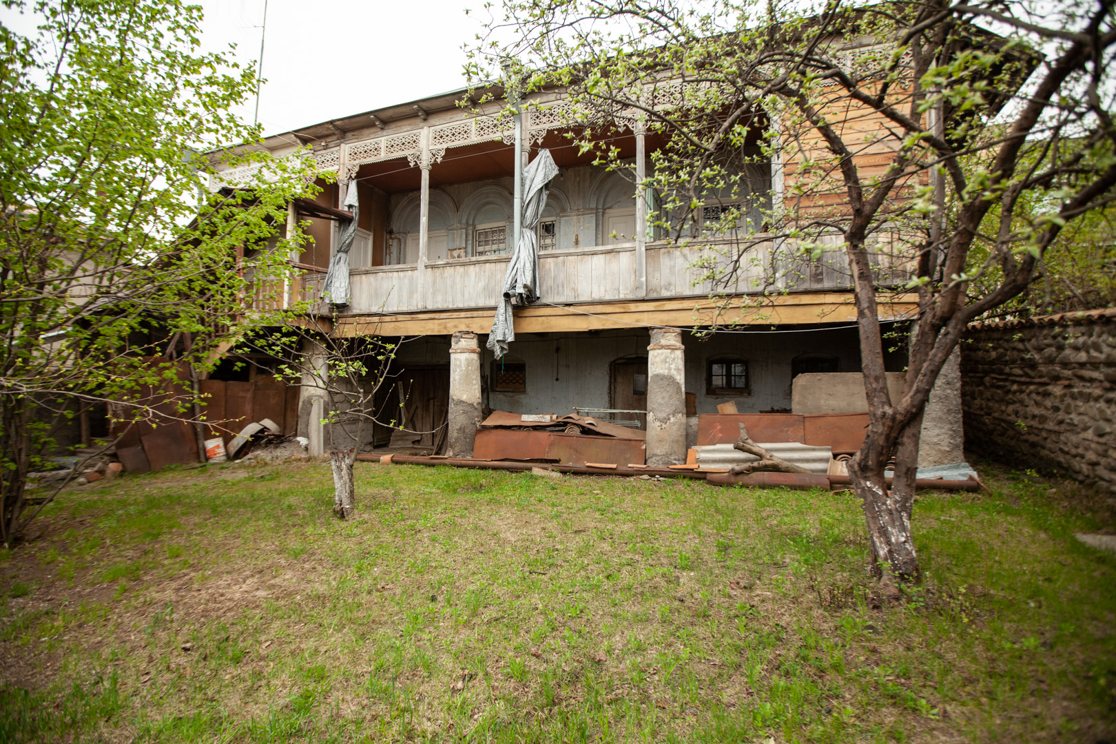A two-storey house at the back of the courtyard is surrounded by a stone-and-brick fence. An openwork wooden balcony supported by brick plastered pillars gives the building a special artistic value. The house was built in the first half of the 19th century, but it received its finished look at the end of the same century. The house is important from an urban planning point of view, since the building, with its space-planning characteristics, plays an important role in formation the microdistrict development.