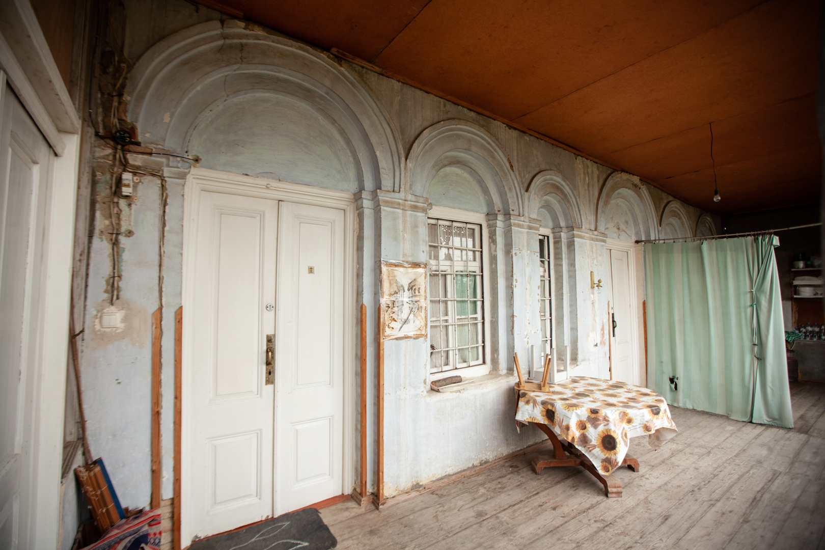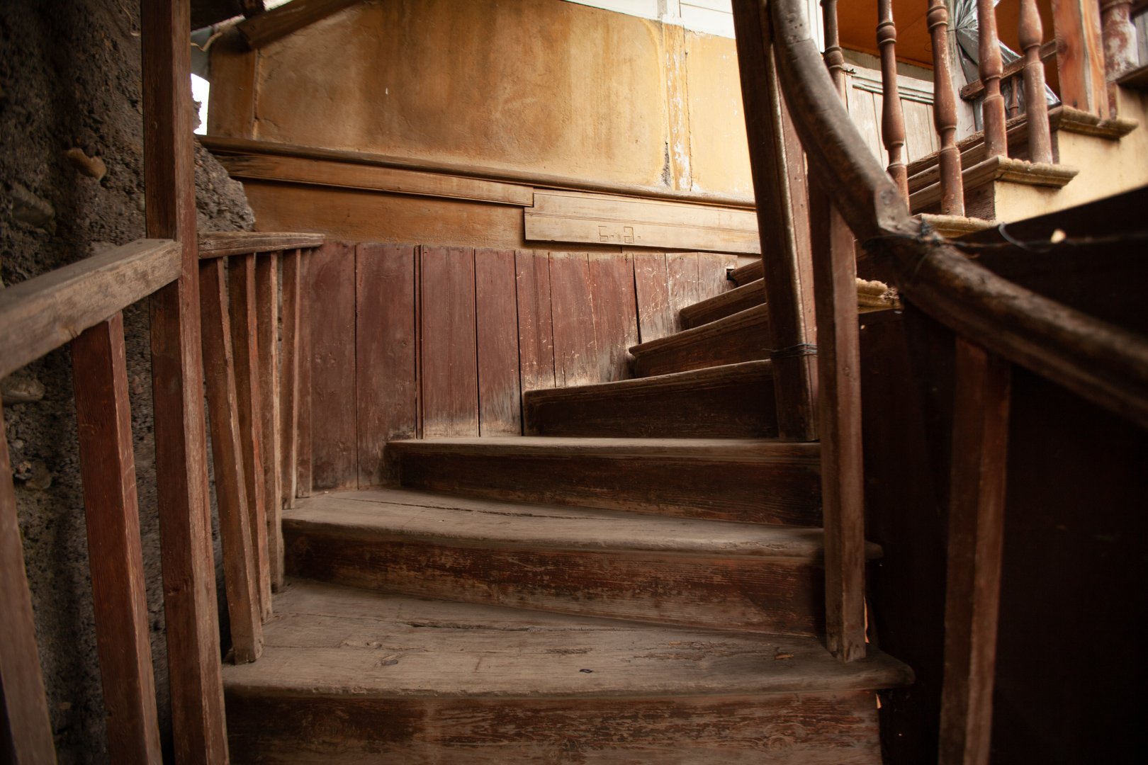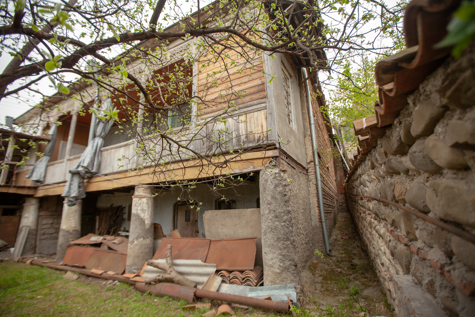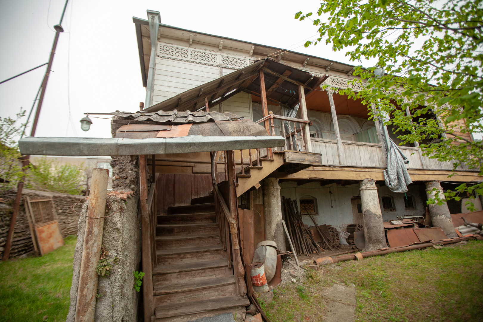 A two-storey house at the back of the courtyard is surrounded by a stone-and-brick fence. An openwork wooden balcony supported by brick plastered pillars gives the building a special artistic value. The house was built in the first half of the 19th century, but it received its finished look at the end of the same century. The house is important from an urban planning point of view, since the building, with its space-planning characteristics, plays an important role in formation the microdistrict development.