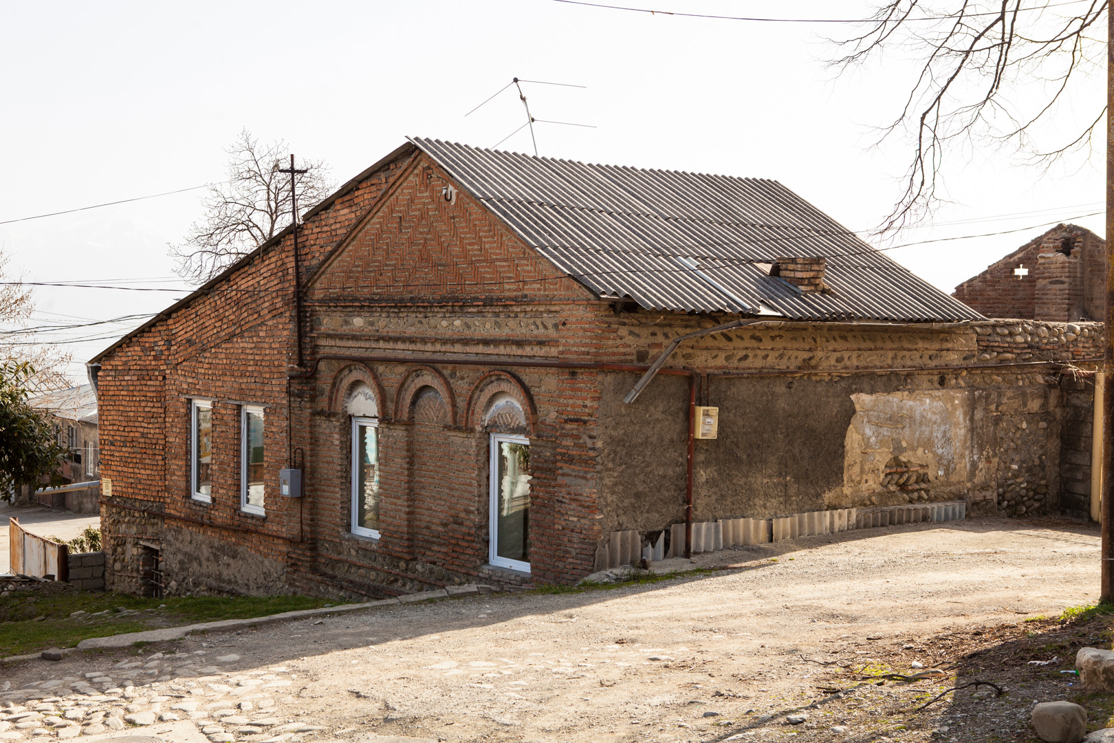 Built of brick and cobblestones, the modest one-storey building has changed significantly today, although the decorative arcade that contour the windows and the pediment decoration made of brickwork indicate the age of the house and date it to the second half of the 19th century. Despite the late renovation, the building is important for its antiquity and traditional facade composition.