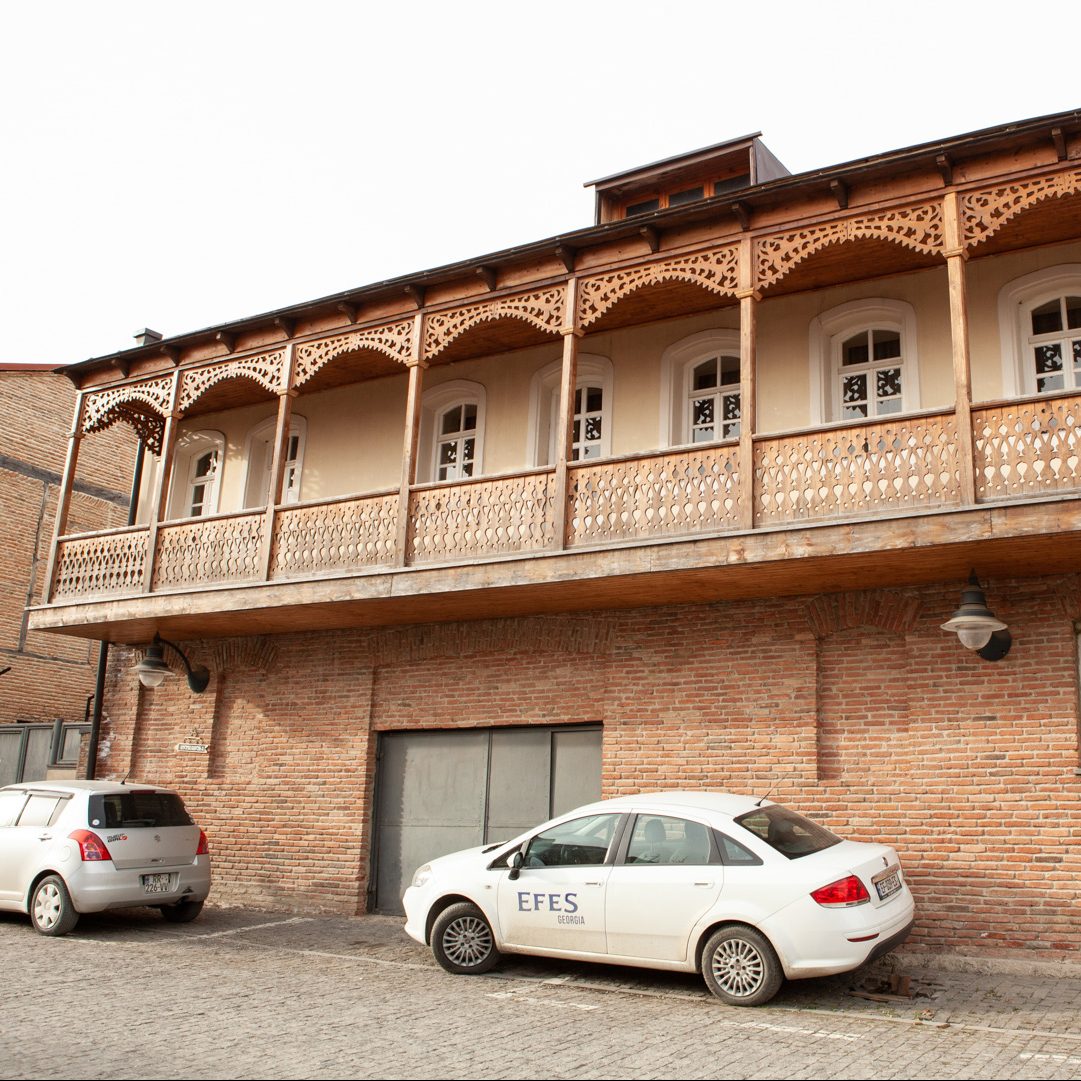 The main artistic accent of the two-storey brick house, stretched along the longitudinal axis of the street, is a wooden lathed balcony running along the entire length of the facade. The first floor of the house used to be a shopping arcade, and the second floor served as a hotel and residential function. The building was built in the middle of the 19th century. Thus, the building is important for its antiquity, mixed function, traditional for Telavi planning and artistic and architectural solution.