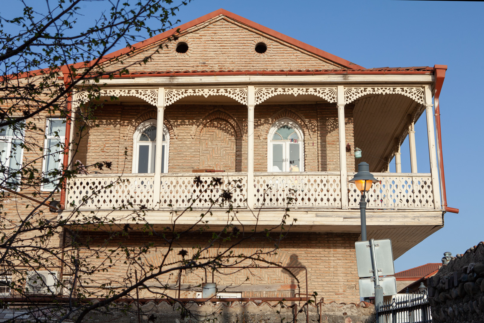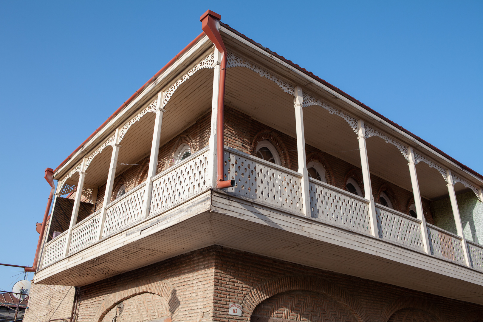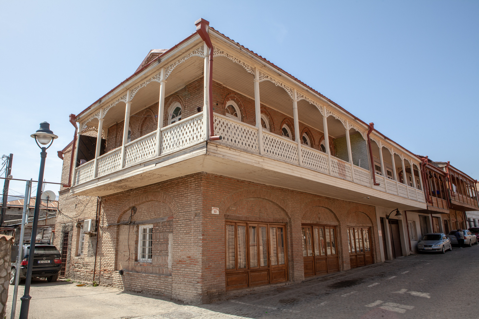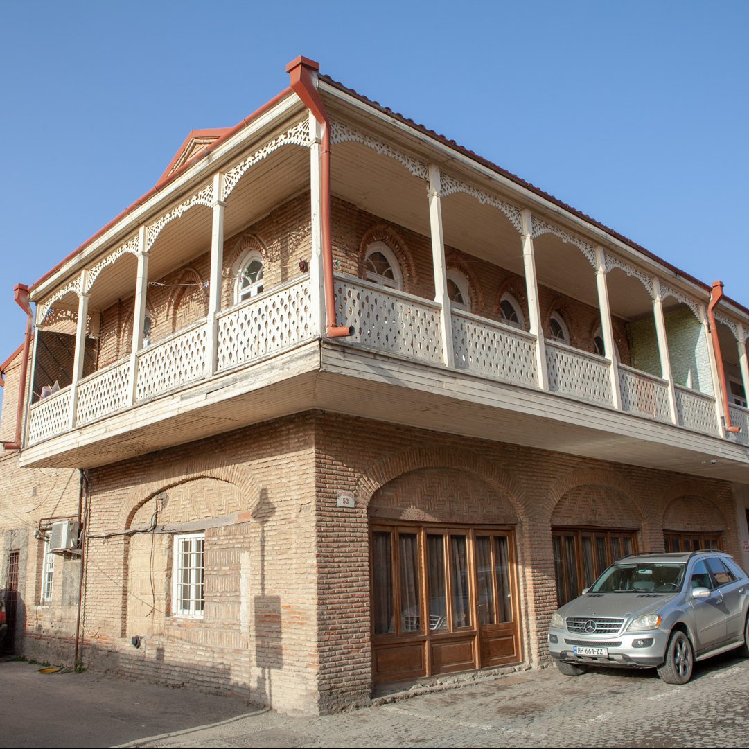 ორი ქუჩის კვეთაზე მდგარი, შეულესავი აგურის ორსართულიანი შენობა ხის მოხარატებული აივნით ეხსნება გარემოს. საცხოვრებელი სახლის პირველი სართული ძველად სავაჭრო რიგს წარმოადგენდა. მე-19 საუკუნეების მეორე ნახევარში აგებული შენობა თავისი მდებარეობით, მასშტაბითა და სივრცითი გეგმარებით მნიშვნელოვნად აყალიბებს მიმდებარე განაშენიანებას. შესაბამისად, საცხოვრებელი სახლი მნიშვნელოვანია ქალაქგეგმარებითი თვალსაზრისით, რადგან თავისი სივრცით-გეგმარებითი მახასიათებლით მიკროუბნის განაშენიანების მაფორმირებელ როლს თამაშობს.