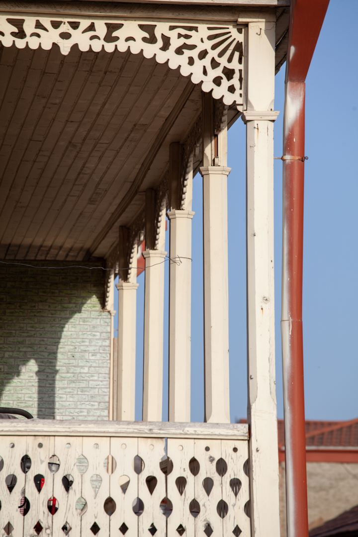 A two-storey unplastered brick house at the intersection of two streets has a wooden lathed balcony. The first floor of the house was occupied by a shopping arcade. Built in the second half of the 19th century, the building, with its location, scale and spatial planning, largely determines the adjacent development. Consequently, the house is important from an urban planning point of view, since with its space-planning characteristics it plays a formative role in the development of the microdistrict.