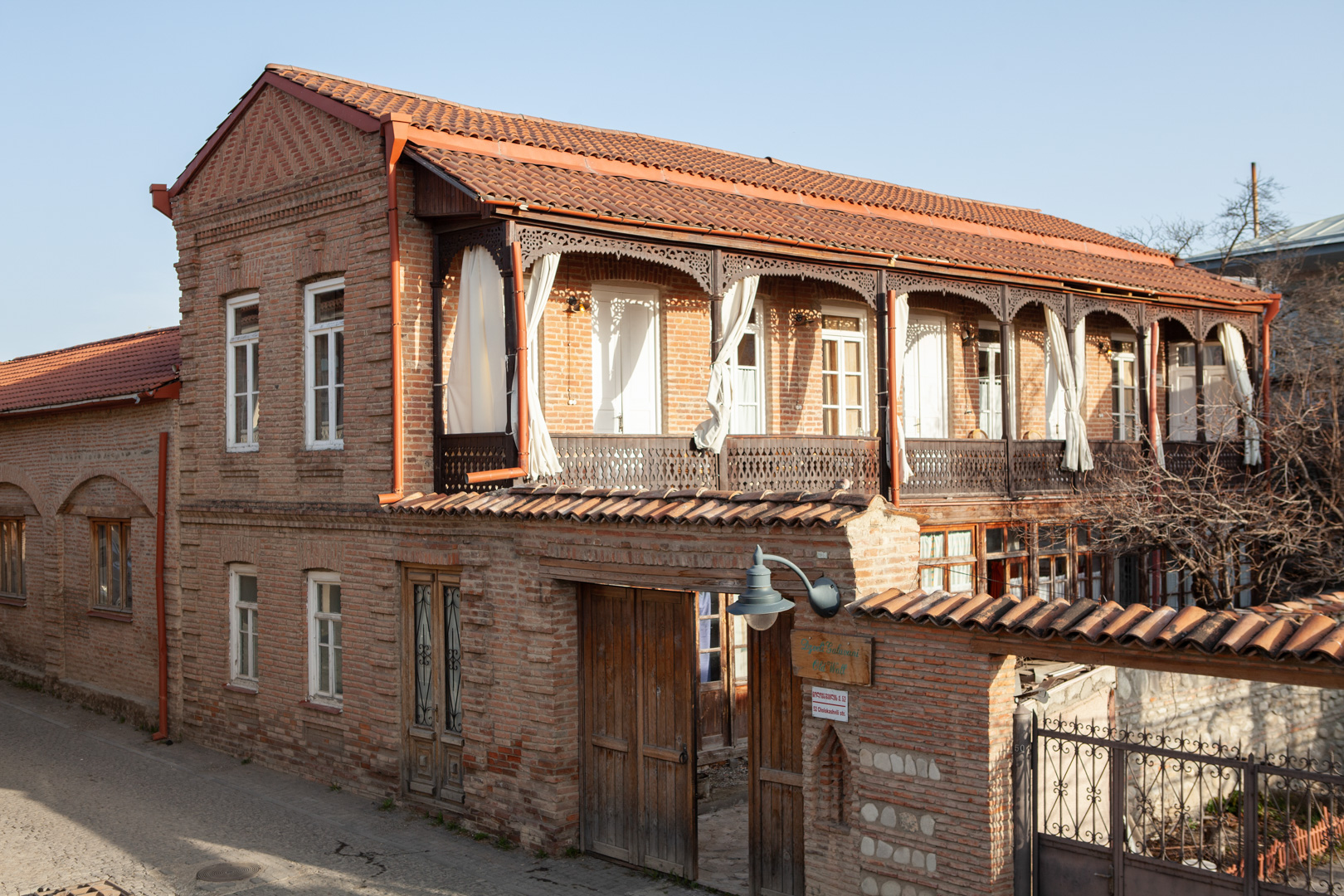 Built in the second half of the 19th century, a two-storey unplastered brick building of high proportions with an openwork wooden balcony overlooking the courtyard forms the line of general development the street. In the interior of the house, old wooden doors and wi ndows, a fireplace, a wall stove and cupboards have been preserved; The walls in one room are painted. In the yard there is an old brick horse stable with a wooden roof and an old well. The building is important for its well-preserved planning structure and authentic interior; This building is one of the interesting examples of Telavi’s urban architecture.