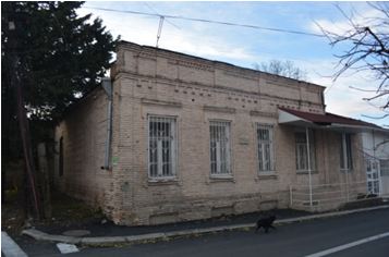 XIX საუკუნის მიწურულის, ერთსართულიან მაღალ სახლს აუთენტური, შერეული წყობის სახე გვერდითა (ეზოს მხრიდან) ფასადზე აქვს შემორჩენილი, მთავარი ფასადის მოპირკეთება კი აგურითაა ჩანაცვლებული. ფასადს აგვირგვინებს პროფილირებული სწორკუთხა პარაპეტი. კარ-ფანჯრის ხის ალათები აუთენტურია. შენობას მნიშვნელობას სძენს მისი ხნოვანება, კედლის წყობა და აუთენტური ხის ელემენტები.