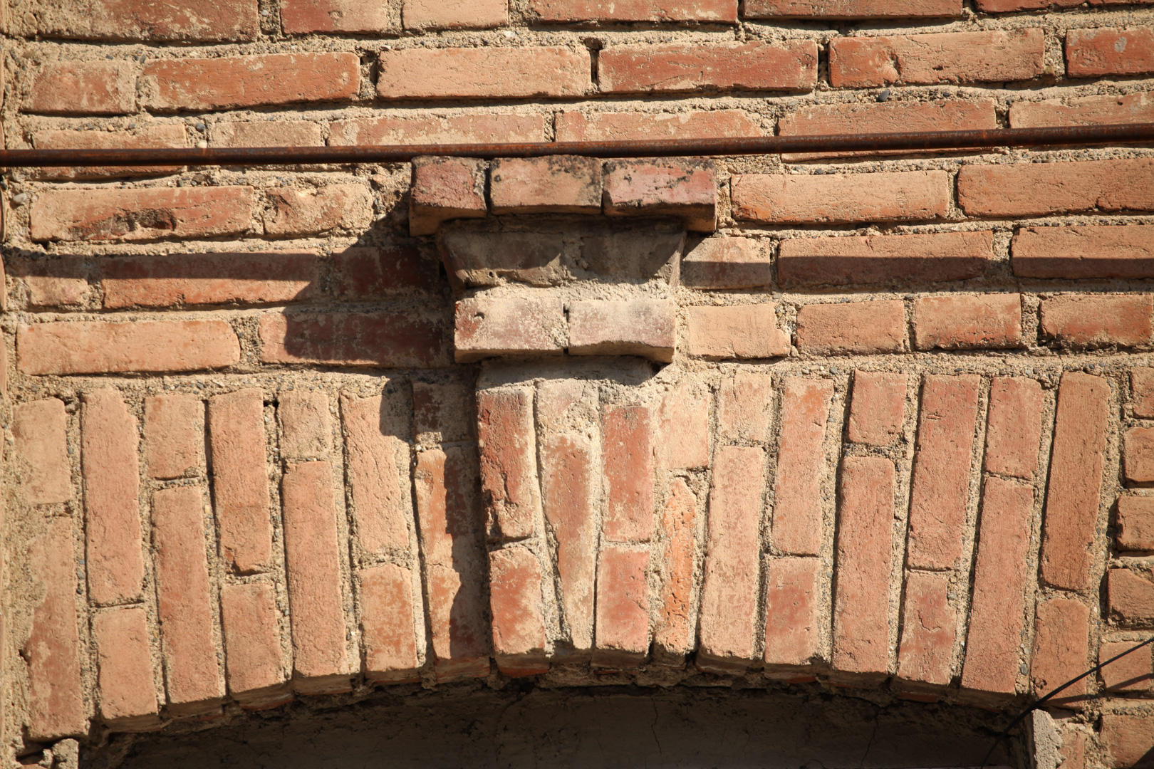 The brick facade of the house faces Kvirike Didi Street, the composition of which consists of three windows and an entrance door. Above the openings there is a high rectangular parapet, typical of Telavi dwelling of the late 19th century. The keystone motif of the windows is of brick. The importance of the building is given by a modest and graceful proportions and brickwork decoration.