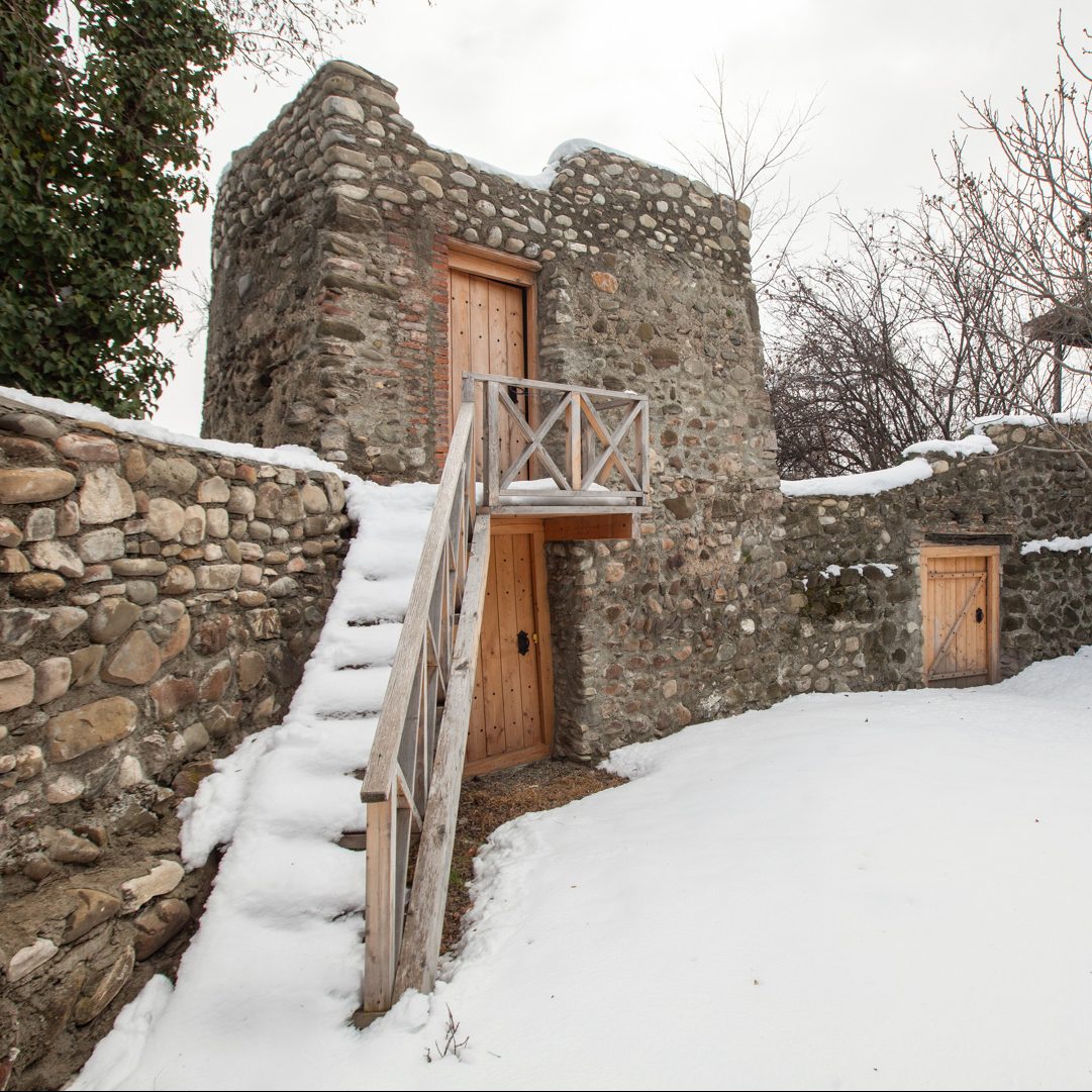 The Korchibashvili Fortress is one of the four main fortresses, which is included in the development of Telavi and forms the historic center of the city. One of the two surviving towers is destroyed, while the other has a cylindrical shape. At the foot of the tower, built in horizontal rows of large cobblestones, there is a powerful fragment of one of the defensive walls of the fortress, running along the development line. The wall has vertical penetrating cracks along its entire length. The Korchibashvili Fortress is an important structure of the historical and architectural memory of the city and their artistic and architectural value is high when assessing the cultural heritage of the city.