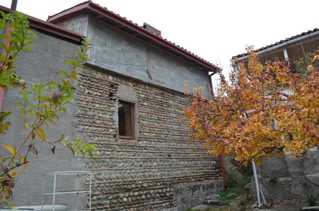 A two-storey house has practically lost its authenticity. The only notable element is a large fragment of a wall built of cobblestone and old Georgian brick, similar to Kakhetian building technique.