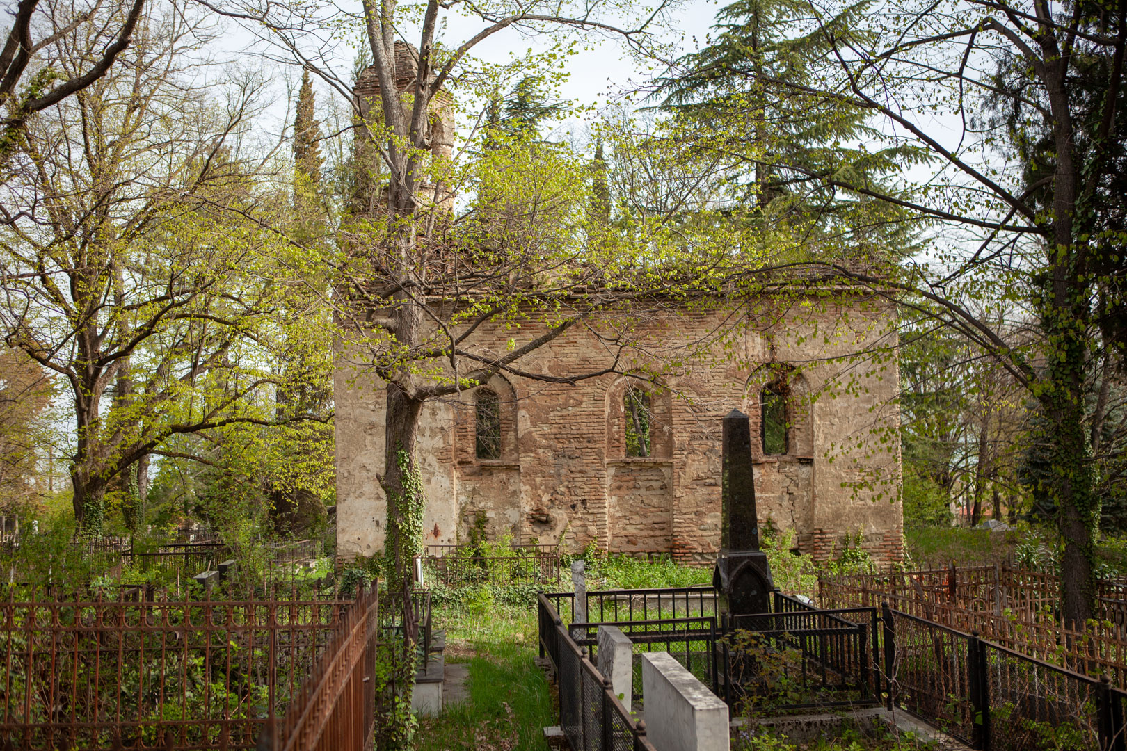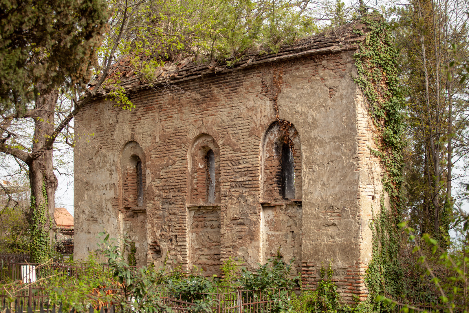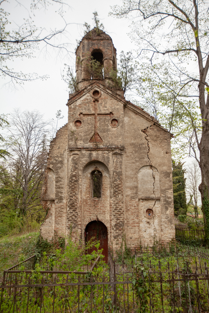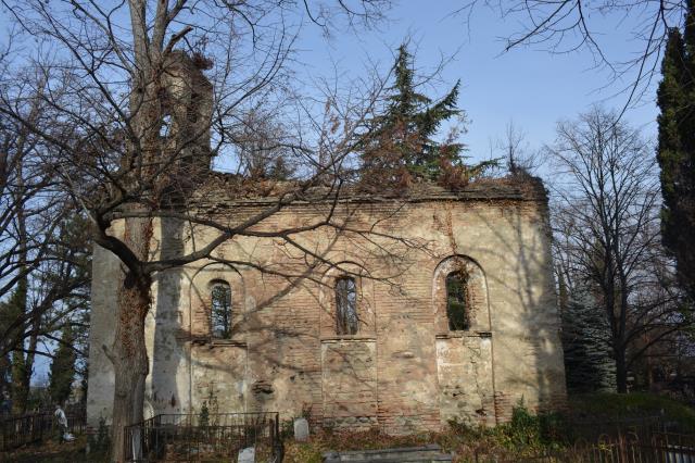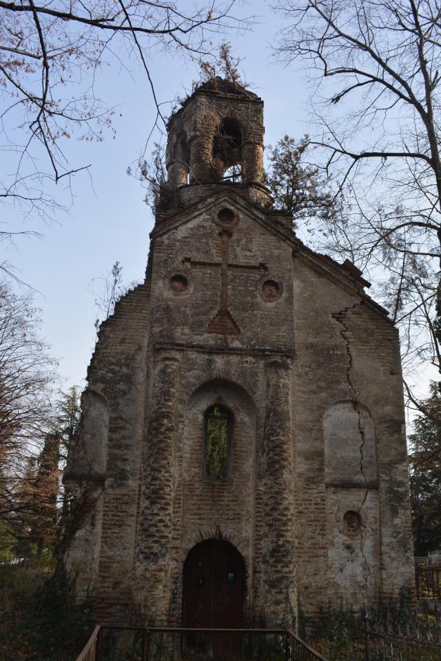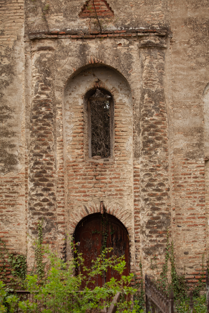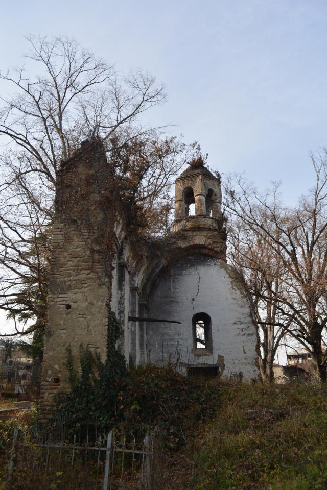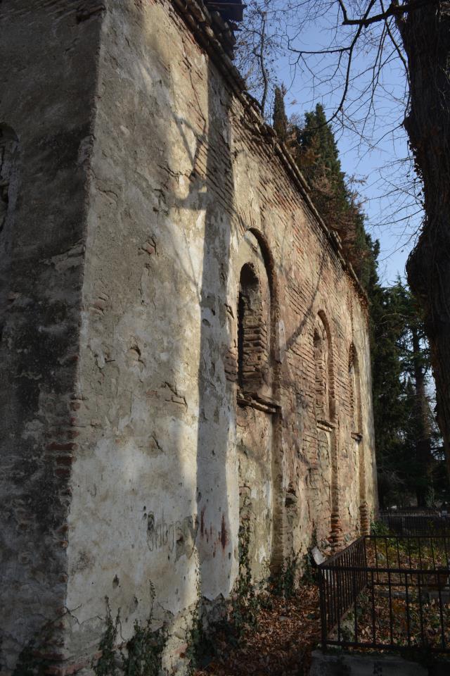 The hall-type church with high proportions stands on the territory of the so-called “Georgian cemetery”. Today, an almost half-ruined temple is built of Georgian flat brick on lime mortar and is covered with plastering. The southern and western walls are relatively better preserved, on the roof of which there is an arched bell tower. The faсade is decorated with decorative arched niches, lunettes and a cross cut deep into a brick plane. The interior, divided by bearing arches of cylindrical vault and pilasters, is plain, without decoration, plastered in white. The church is important because it is one of the few examples of late medieval temple architecture in Georgia; It is one of the important objects of the historical development of Telavi of the 19th century.