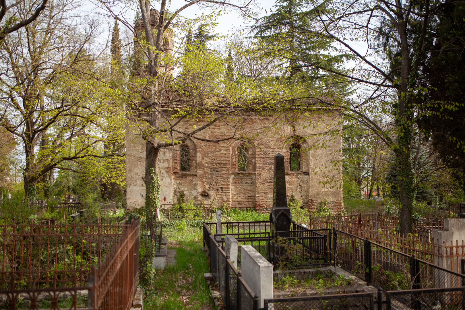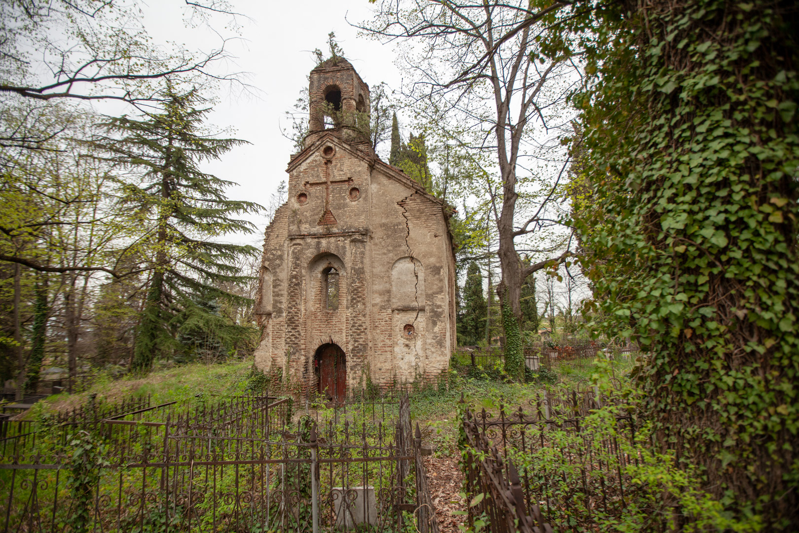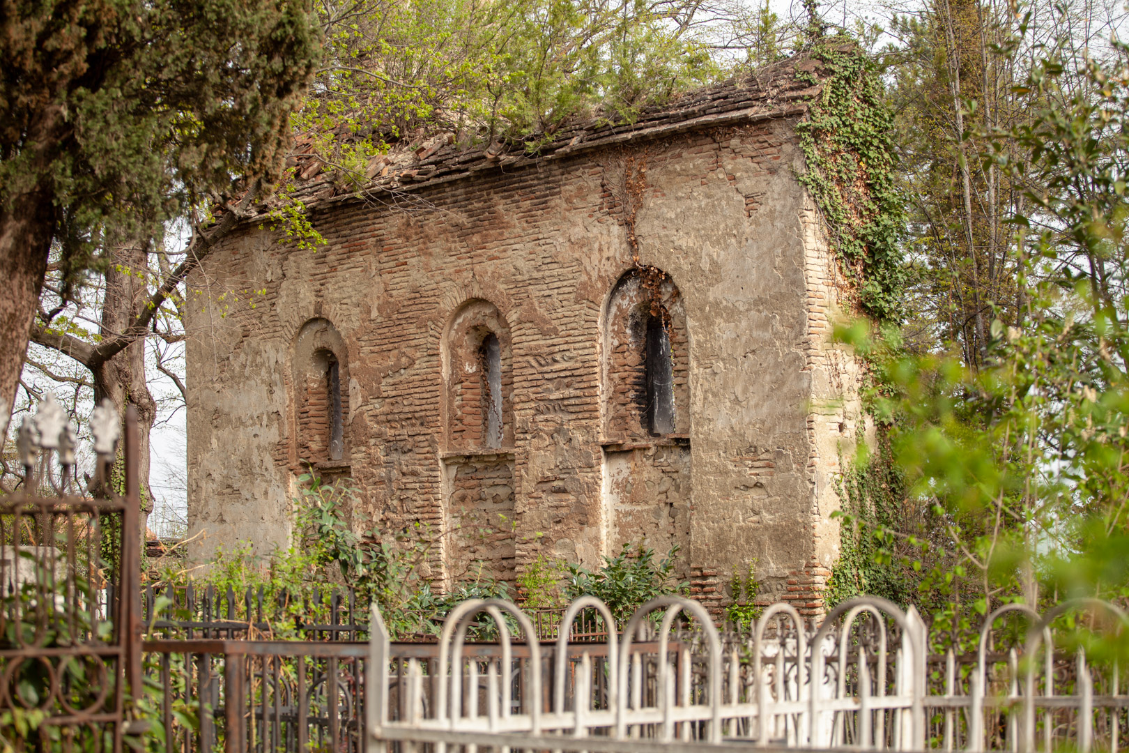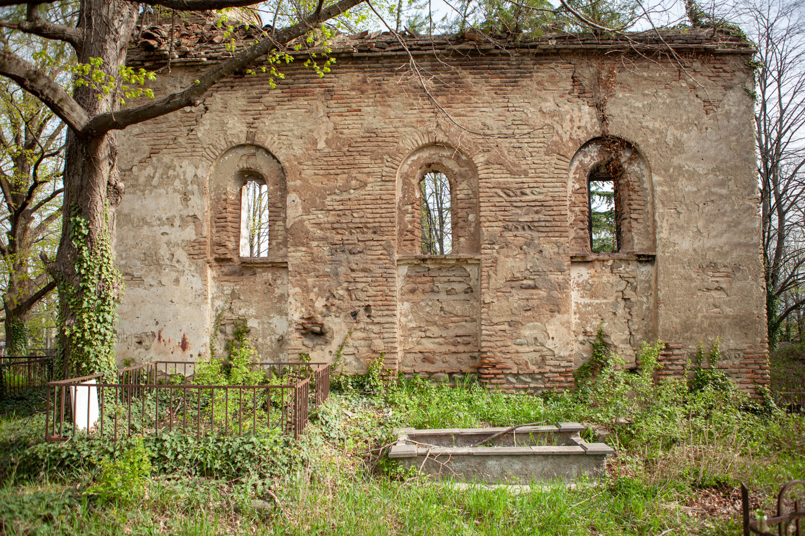 The hall-type church with high proportions stands on the territory of the so-called “Georgian cemetery”. Today, an almost half-ruined temple is built of Georgian flat brick on lime mortar and is covered with plastering. The southern and western walls are relatively better preserved, on the roof of which there is an arched bell tower. The faсade is decorated with decorative arched niches, lunettes and a cross cut deep into a brick plane. The interior, divided by bearing arches of cylindrical vault and pilasters, is plain, without decoration, plastered in white. The church is important because it is one of the few examples of late medieval temple architecture in Georgia; It is one of the important objects of the historical development of Telavi of the 19th century.
