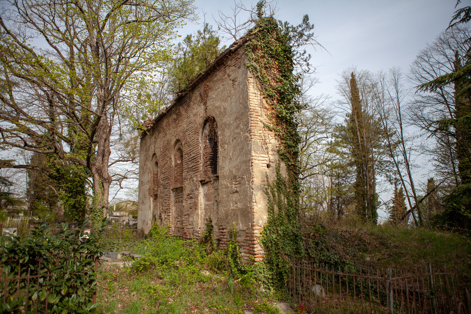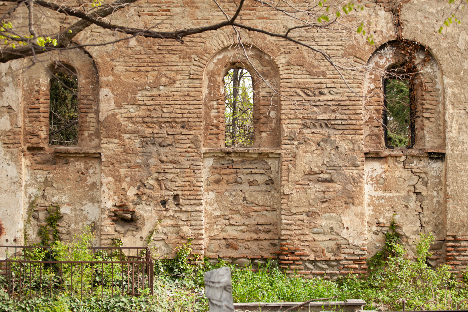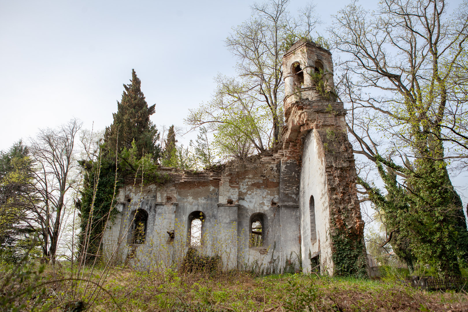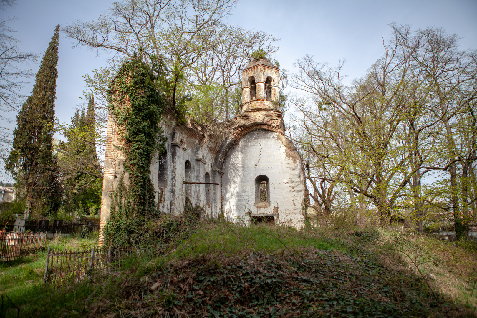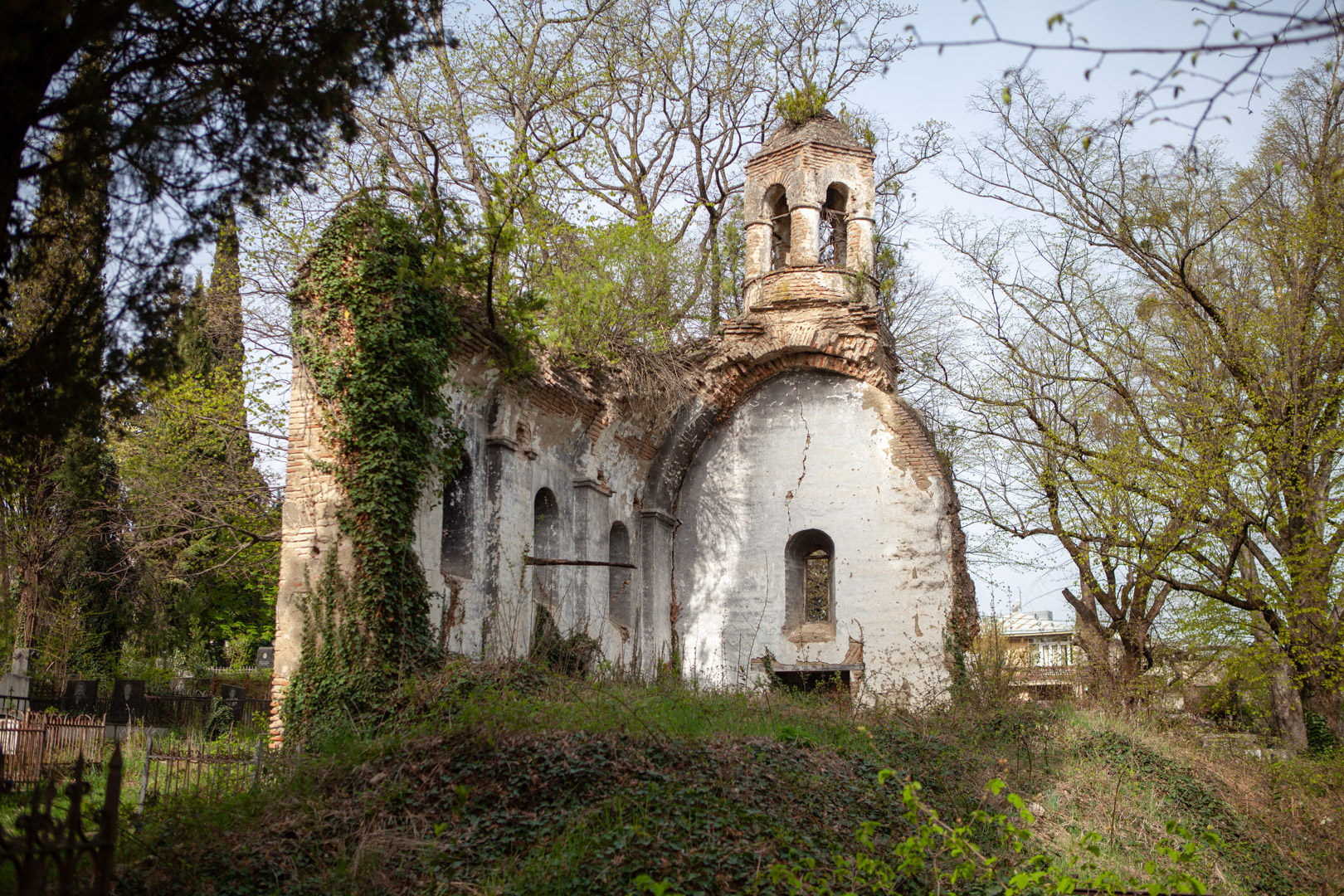 The hall-type church with high proportions stands on the territory of the so-called “Georgian cemetery”. Today, an almost half-ruined temple is built of Georgian flat brick on lime mortar and is covered with plastering. The southern and western walls are relatively better preserved, on the roof of which there is an arched bell tower. The faсade is decorated with decorative arched niches, lunettes and a cross cut deep into a brick plane. The interior, divided by bearing arches of cylindrical vault and pilasters, is plain, without decoration, plastered in white. The church is important because it is one of the few examples of late medieval temple architecture in Georgia; It is one of the important objects of the historical development of Telavi of the 19th century.