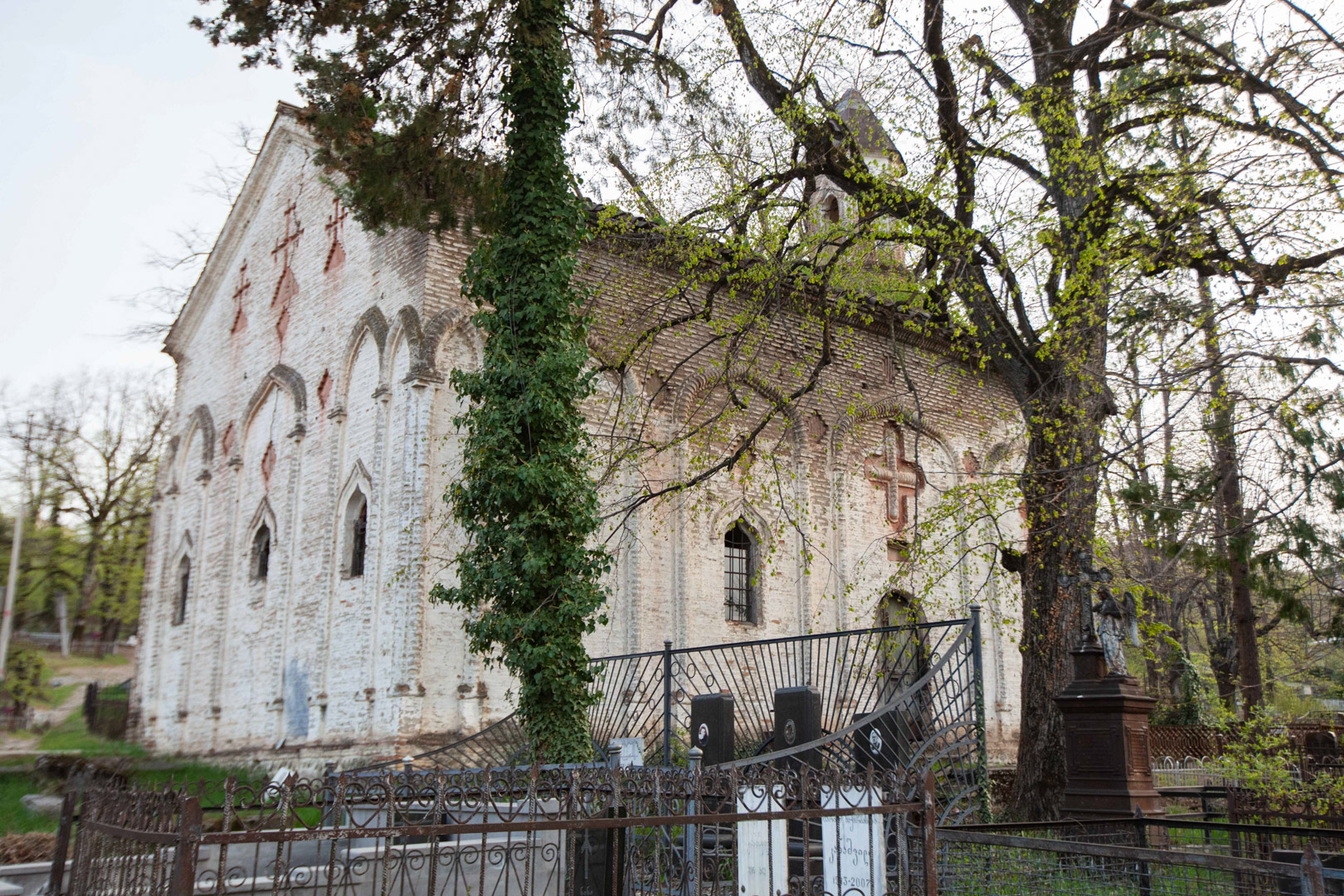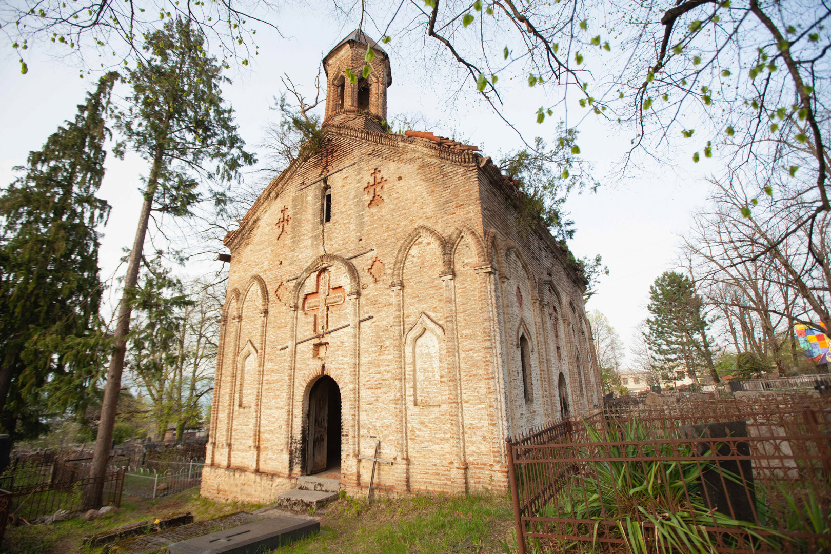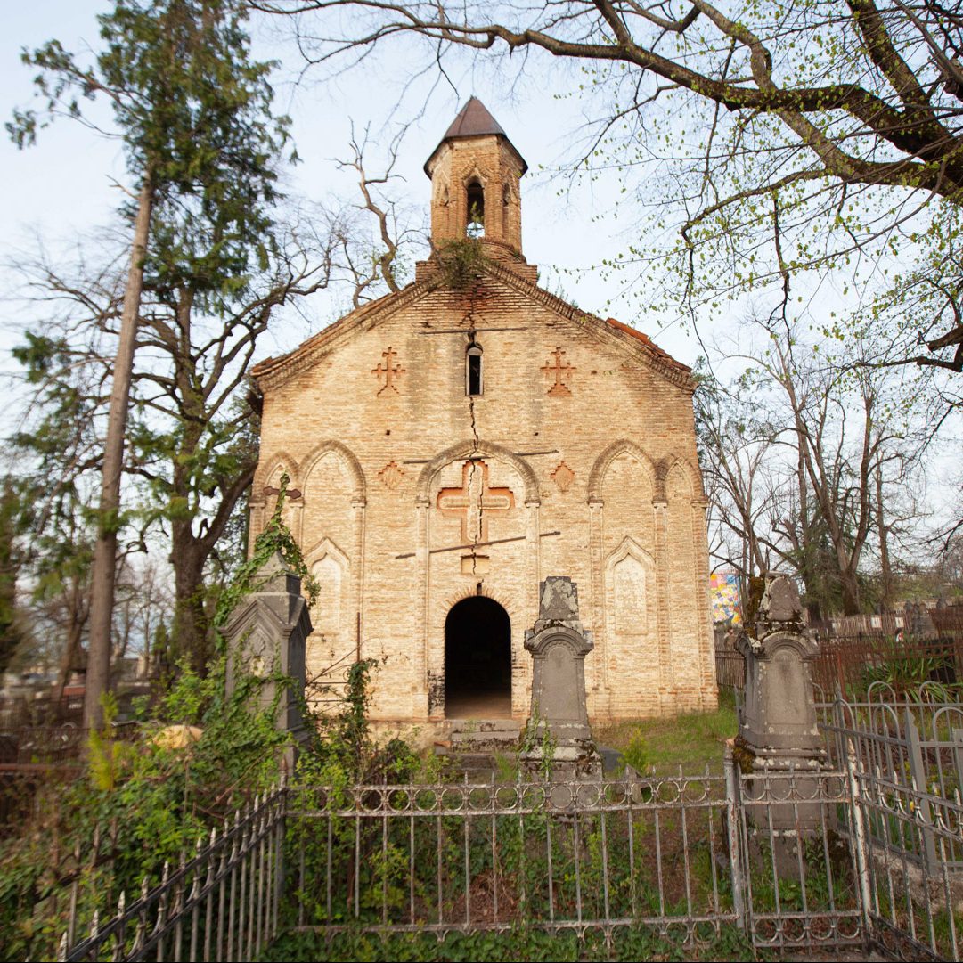 The single-nave hall-type church stands in the depths of the so-called Armenian cemetery. To the west of the temple, on a tiled roof, rises a small bell tower typical of Armenian churches. The church is built of Georgian flat bricks on lime mortar and is covered with plastering. The red paint used for decoration is almost completely washed off. The facades are decorated with arche rows and carved in them decorative rhombuses, pointed niches and crosses. The free, high space of the interior is simple, without any decoration. On the walls, there is only a pointed bearing arcade. The church is important because it is one of the few examples of late medieval temple architecture in Georgia; It is one of the important objects of the historical development of Telavi of the 19th century.