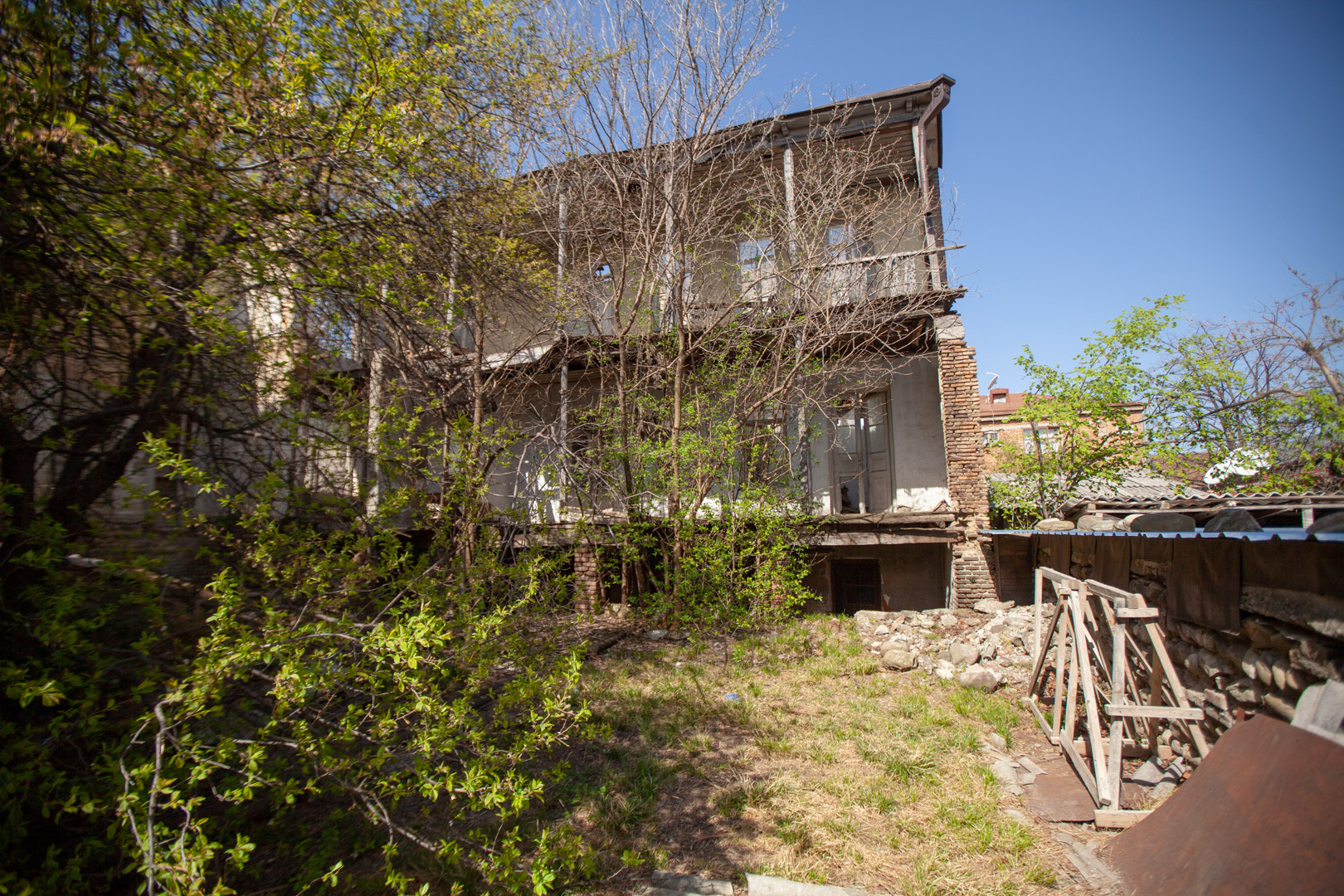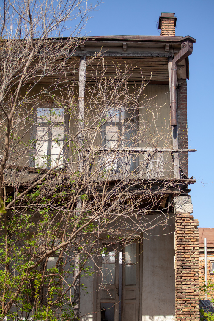 Today, the two-storey house with the Latin “L” planning, built of mixed masonry of brick and cobblestone, is in a very poor condition. The beauty of the building was light wooden openwork balconies placed along the entire length of both floors, of which today, faceted columns with multifaceted capitals draw attention. The house has a basement where arched closets are preserved.