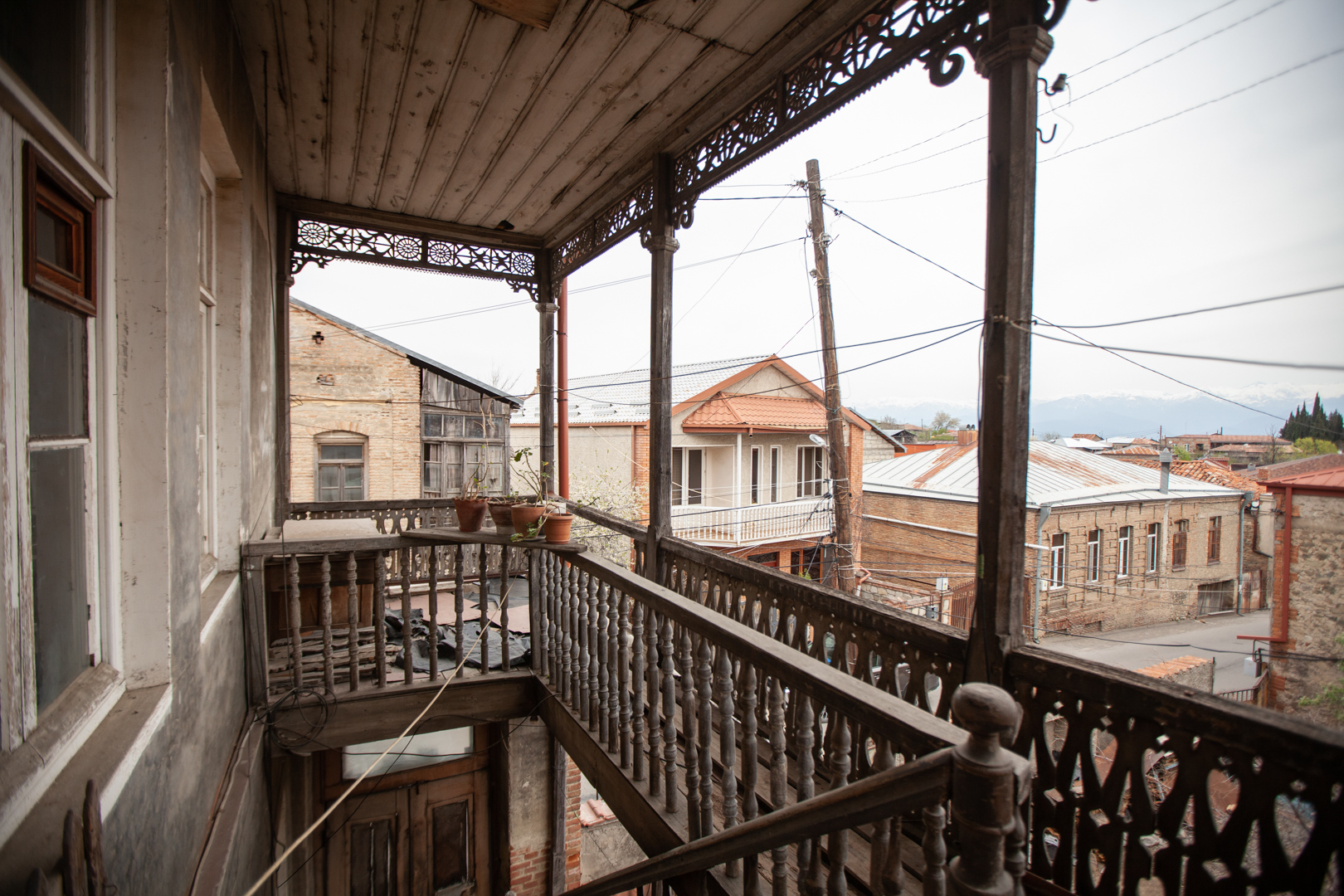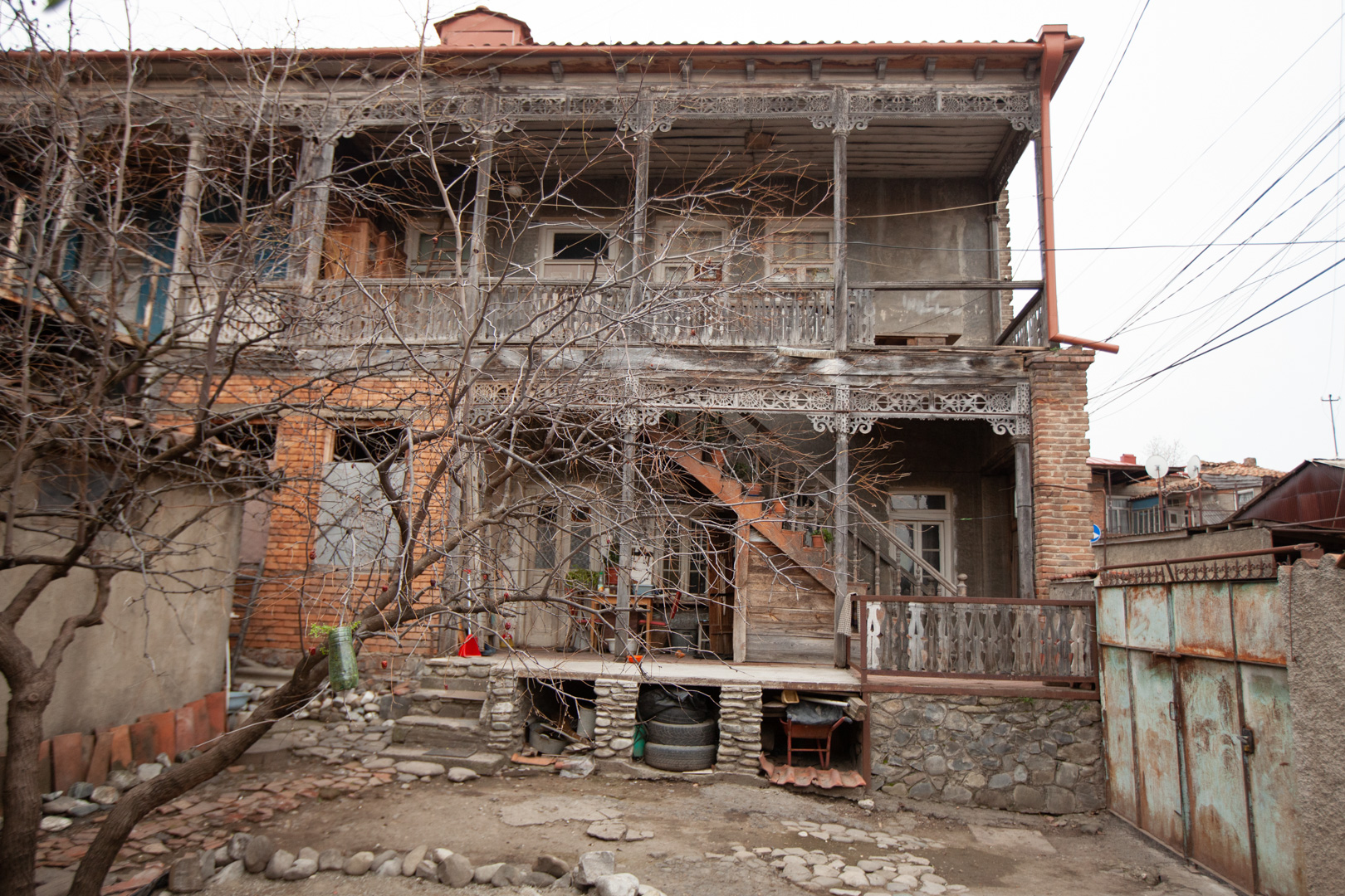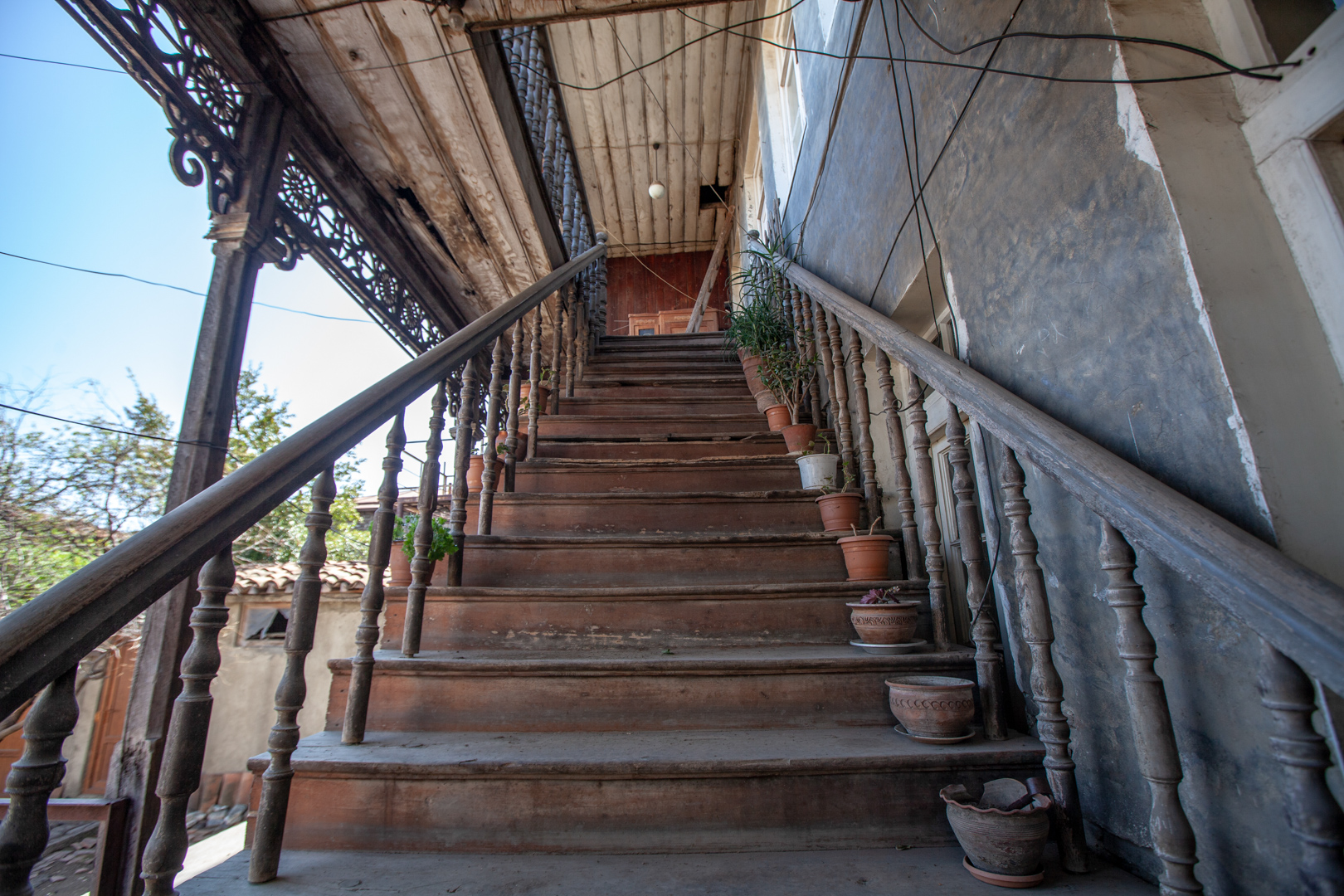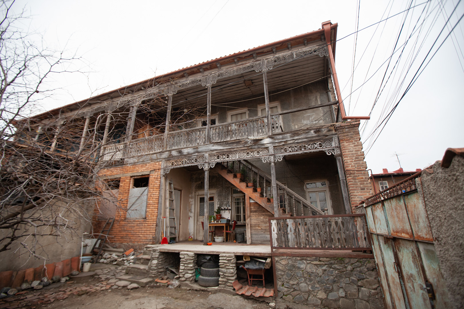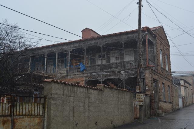 Climbing up the Ghvtismshobeli street, one can see a rather large brick house, with a side facade facing the courtyard, which fascinates with its light wooden openwork balcony, placed along the entire length of both floors. The history of the construction of the building is known. The land plot was bought in 1900 by a resident of Telavi, Melko Tarkhanov, who first built a one-story house, and later added a second floor. The building, by its location, scale and spatial layout, plays an important role in the formation of the urban structure of the adjacent development.