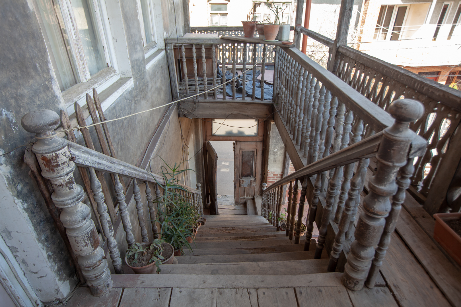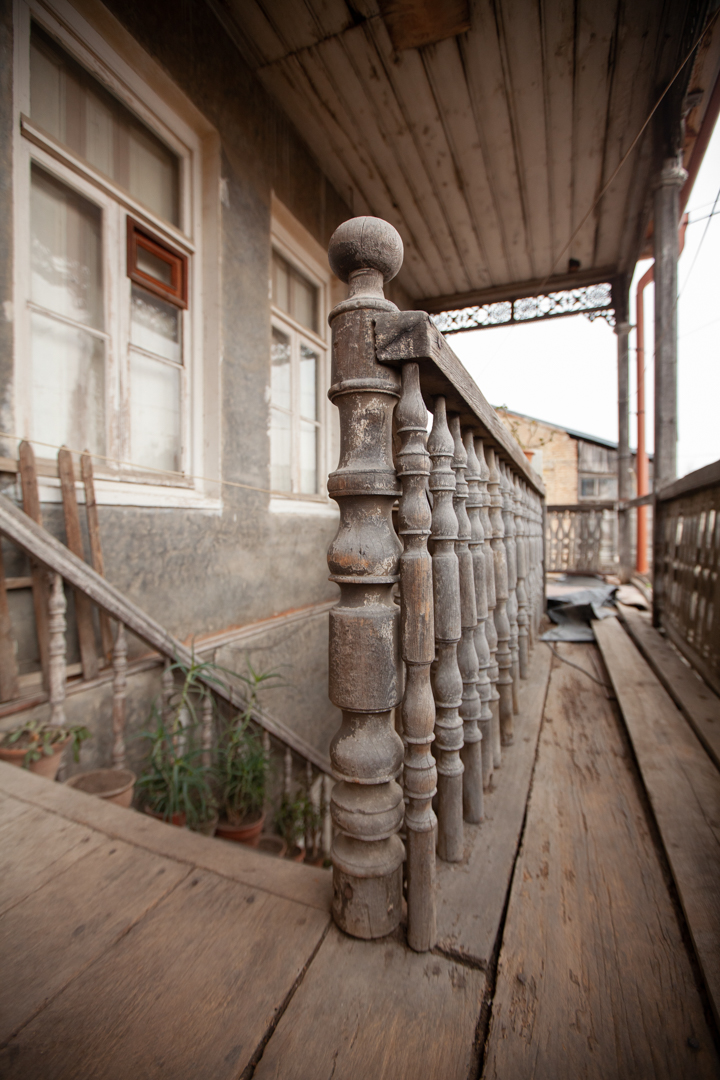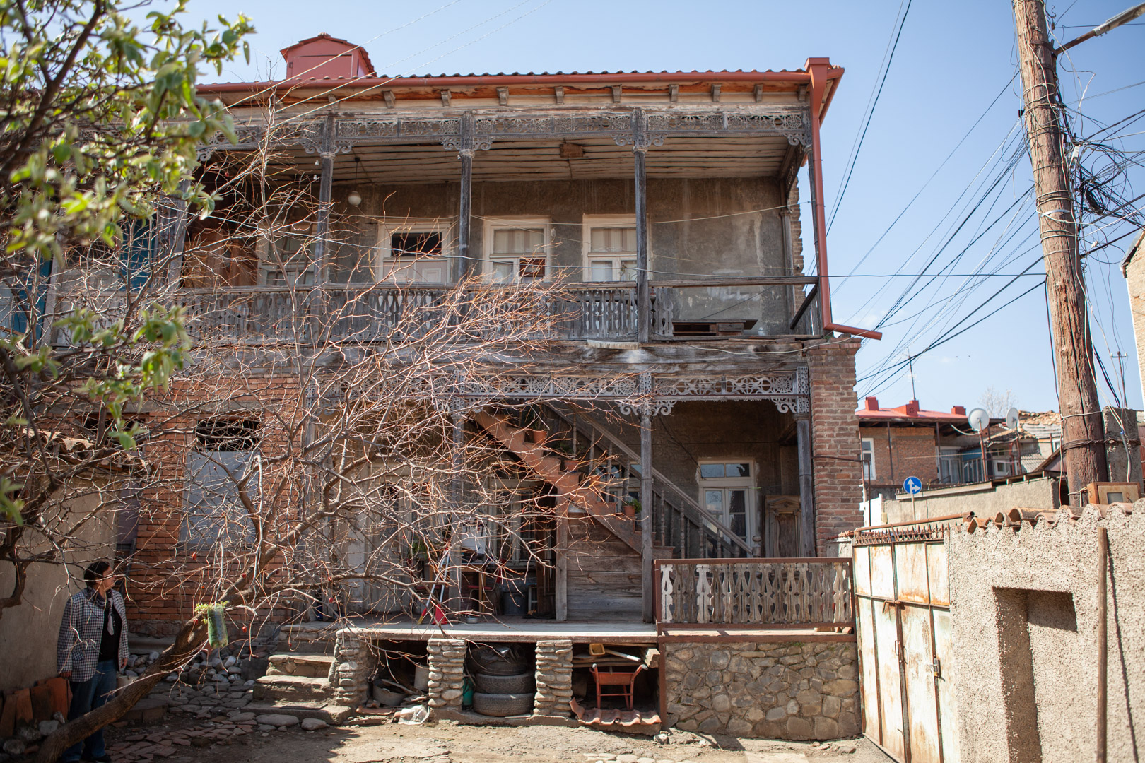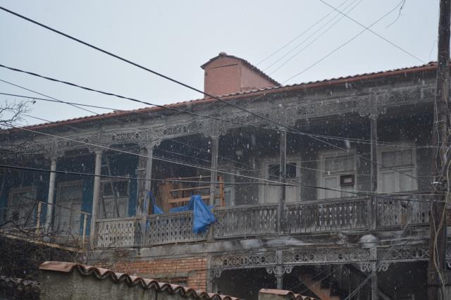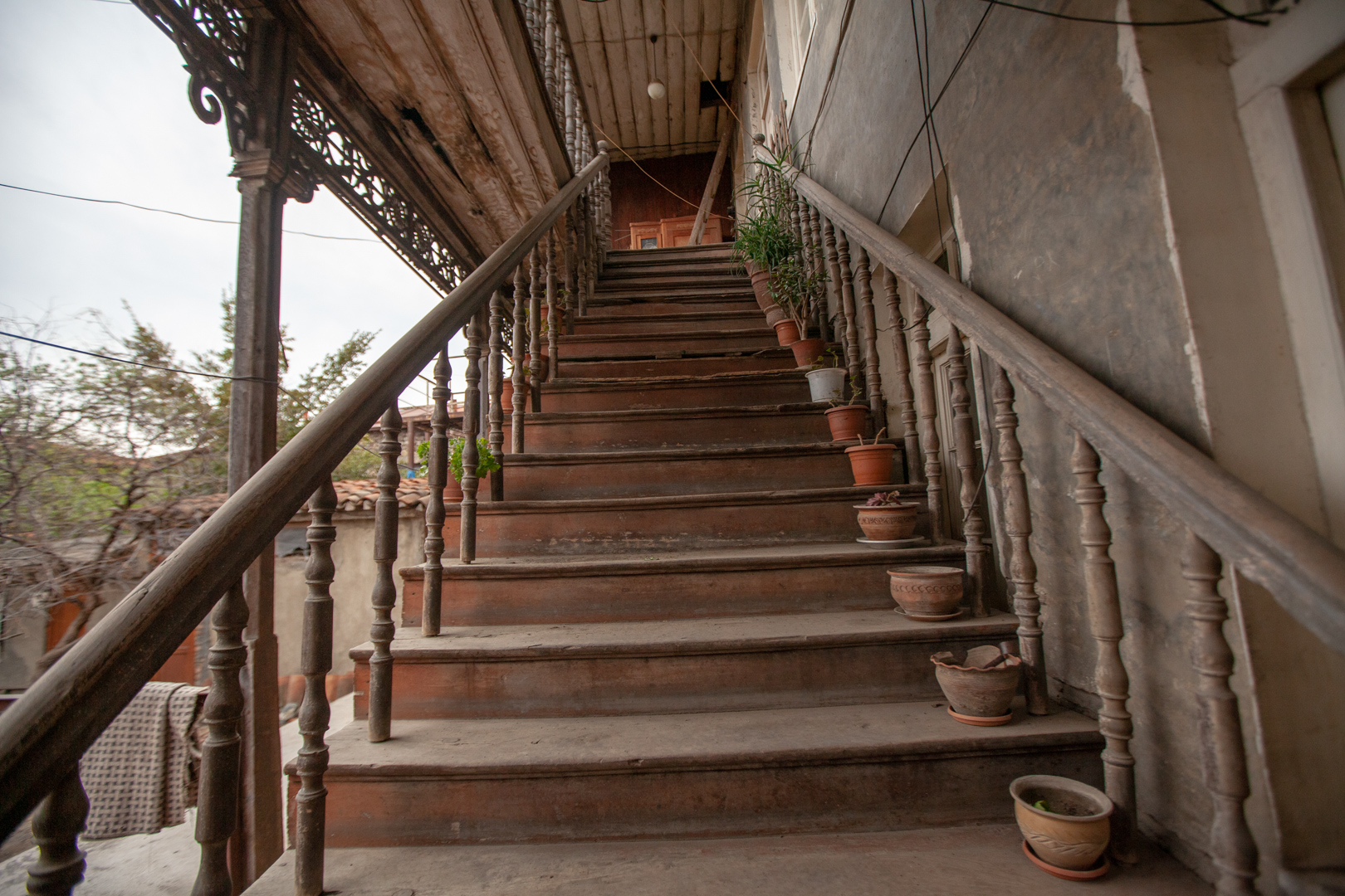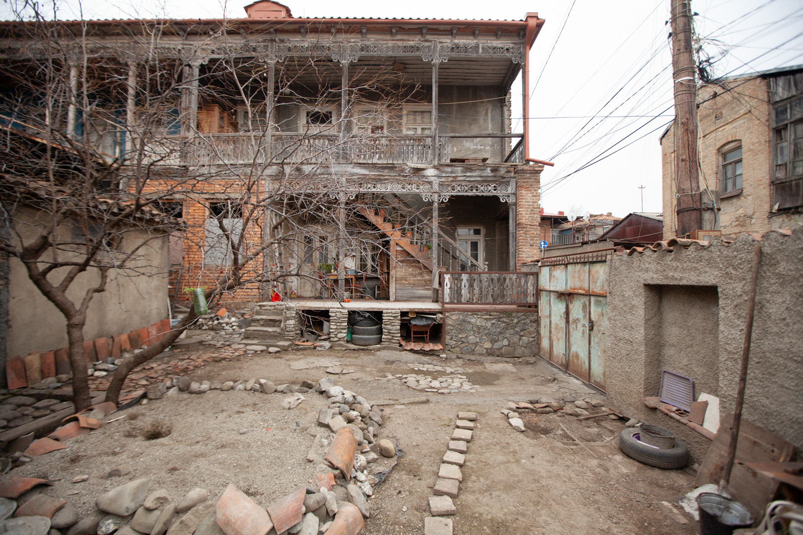 Climbing up the Ghvtismshobeli street, one can see a rather large brick house, with a side facade facing the courtyard, which fascinates with its light wooden openwork balcony, placed along the entire length of both floors. The history of the construction of the building is known. The land plot was bought in 1900 by a resident of Telavi, Melko Tarkhanov, who first built a one-story house, and later added a second floor. The building, by its location, scale and spatial layout, plays an important role in the formation of the urban structure of the adjacent development.