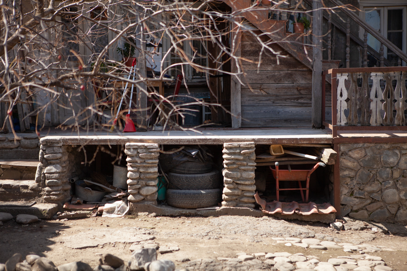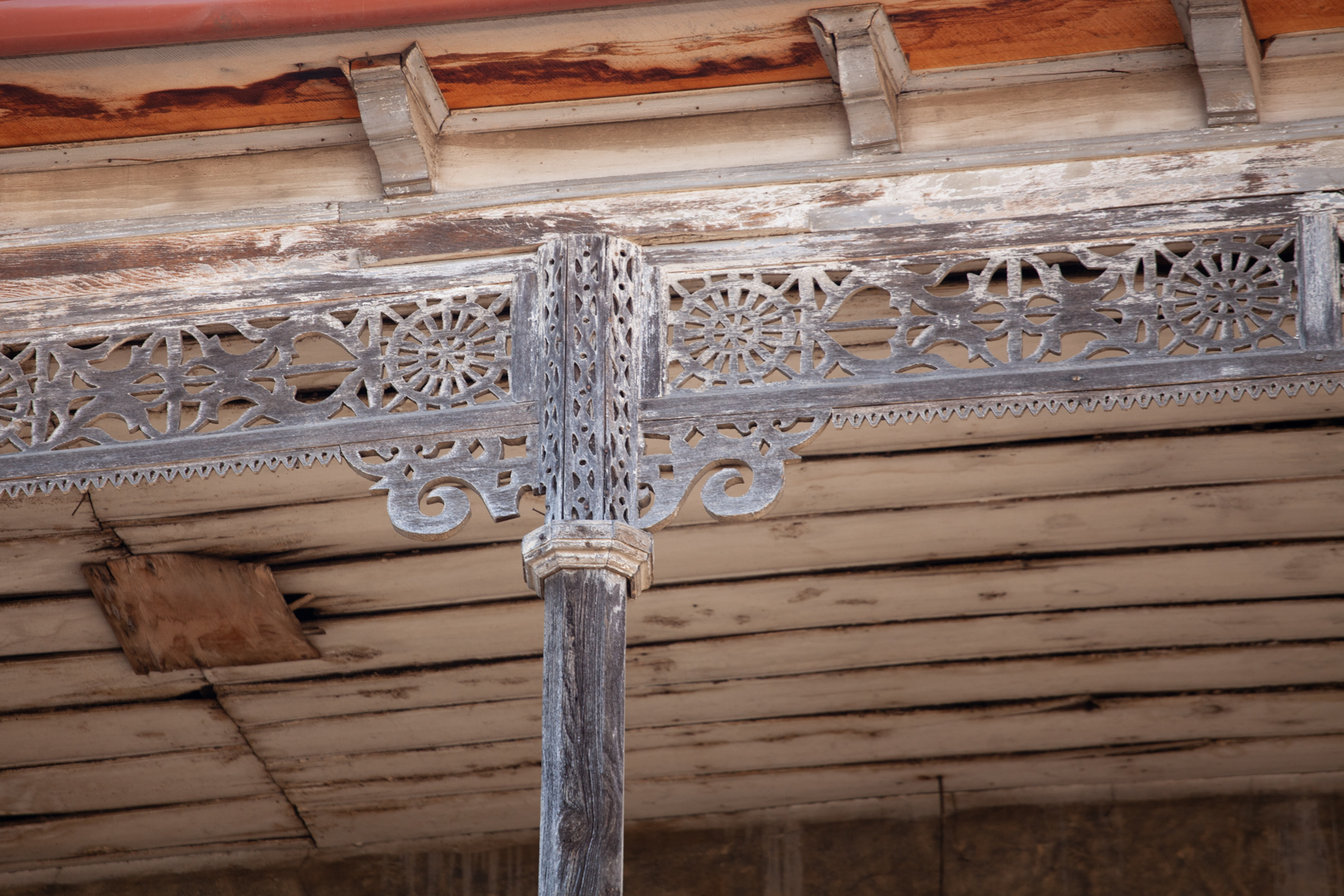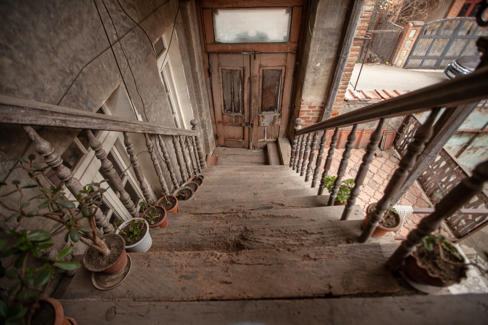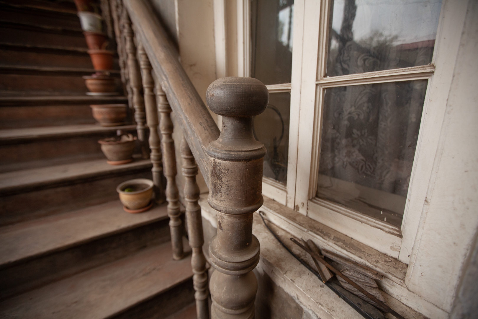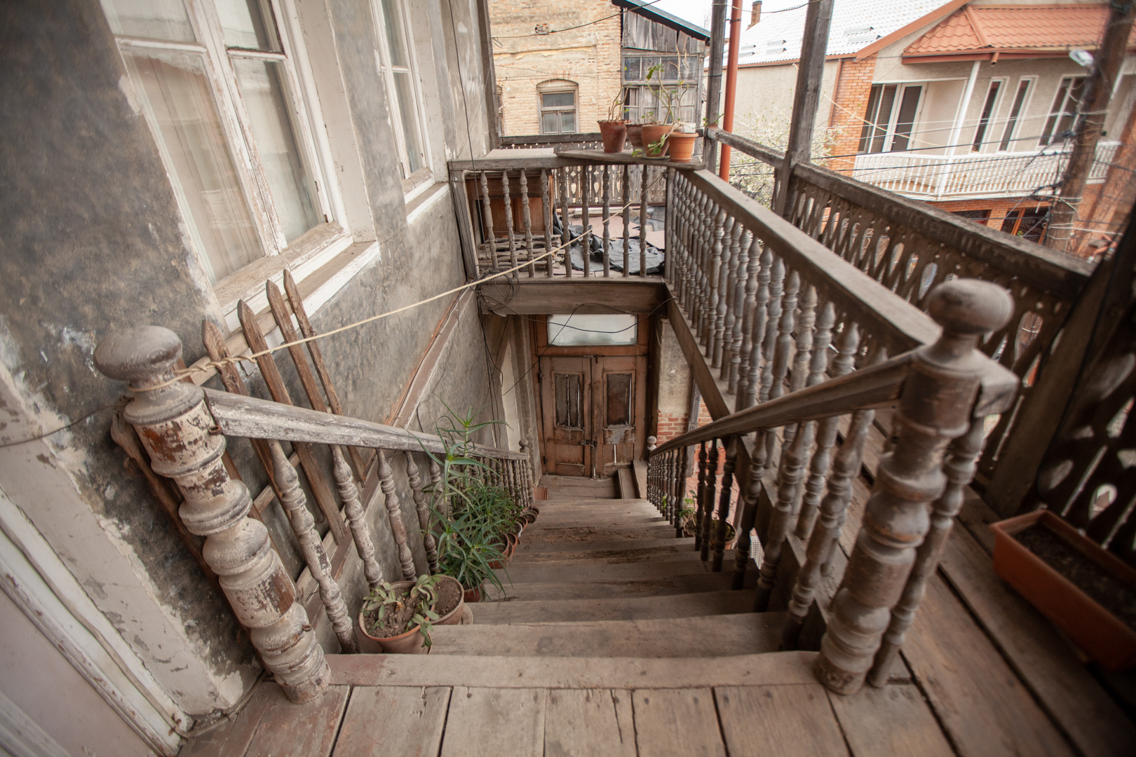 Climbing up the Ghvtismshobeli street, one can see a rather large brick house, with a side facade facing the courtyard, which fascinates with its light wooden openwork balcony, placed along the entire length of both floors. The history of the construction of the building is known. The land plot was bought in 1900 by a resident of Telavi, Melko Tarkhanov, who first built a one-story house, and later added a second floor. The building, by its location, scale and spatial layout, plays an important role in the formation of the urban structure of the adjacent development.